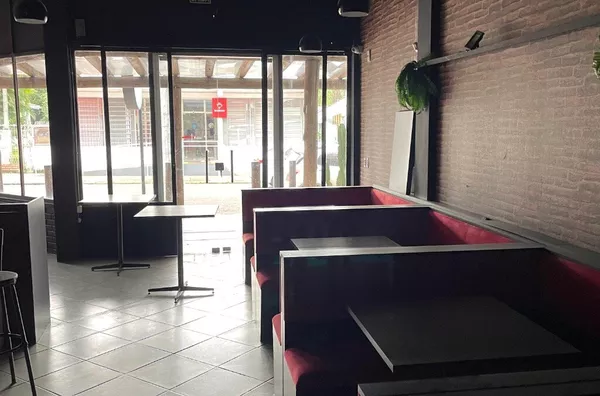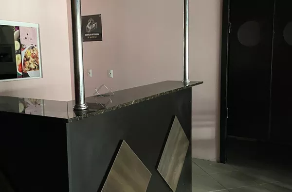 Possuindo aproximadamente 100m² de área construída, distribuído entre cozinha, 2 banheiros, área de atendimento, balcão de pagamento, despensa e área/acesso pelos fundos.