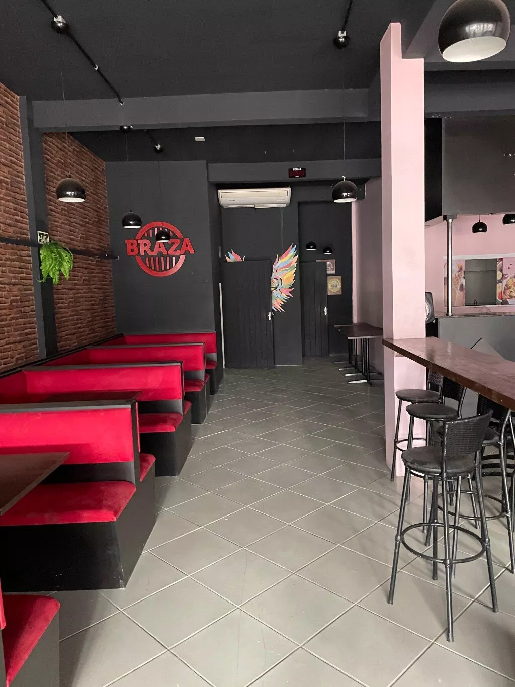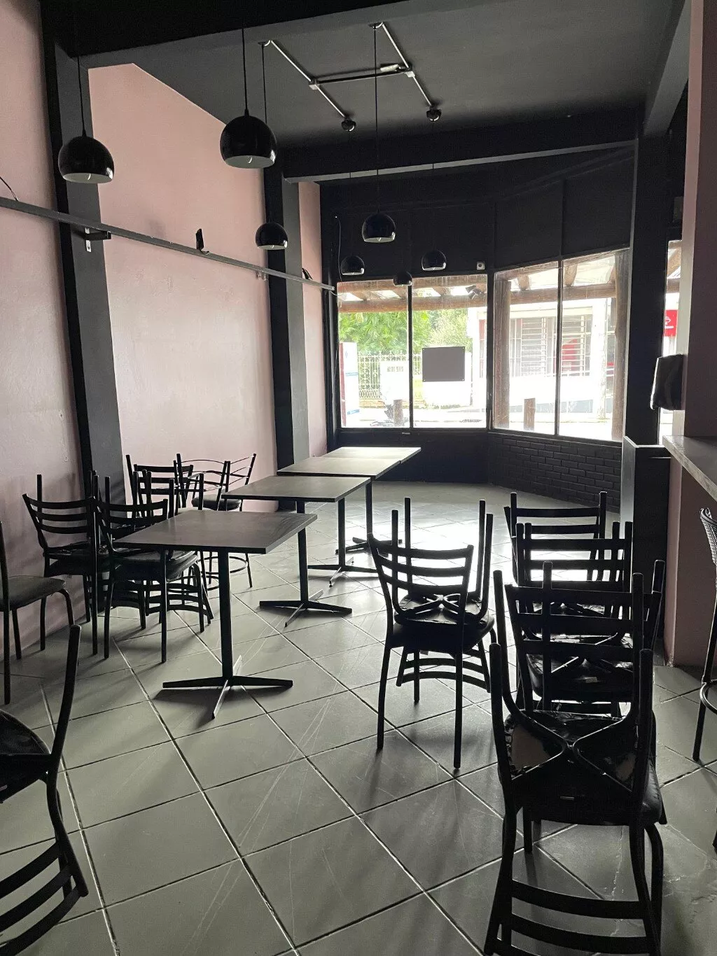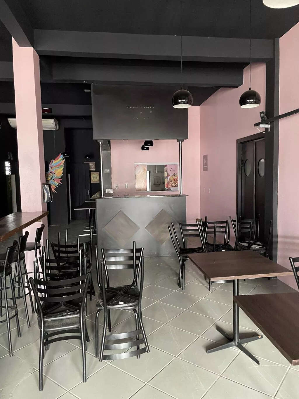 Local já possui mesas e cadeiras de lanchonetes, restaurantes, iluminação, balcão de atendimento, cozinha equipada entre outros.