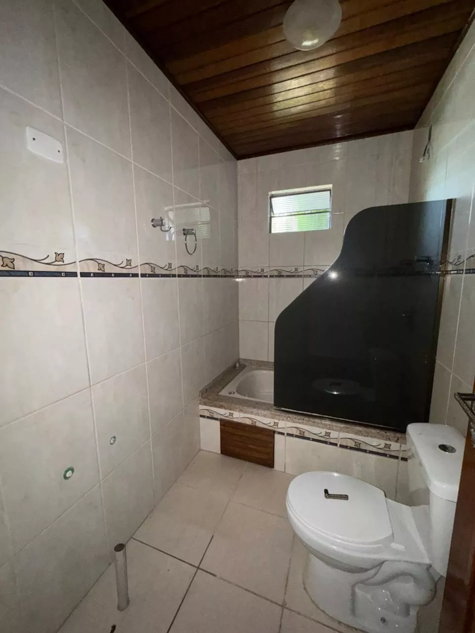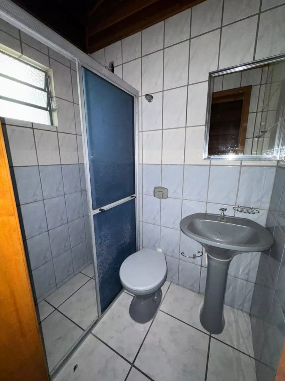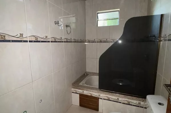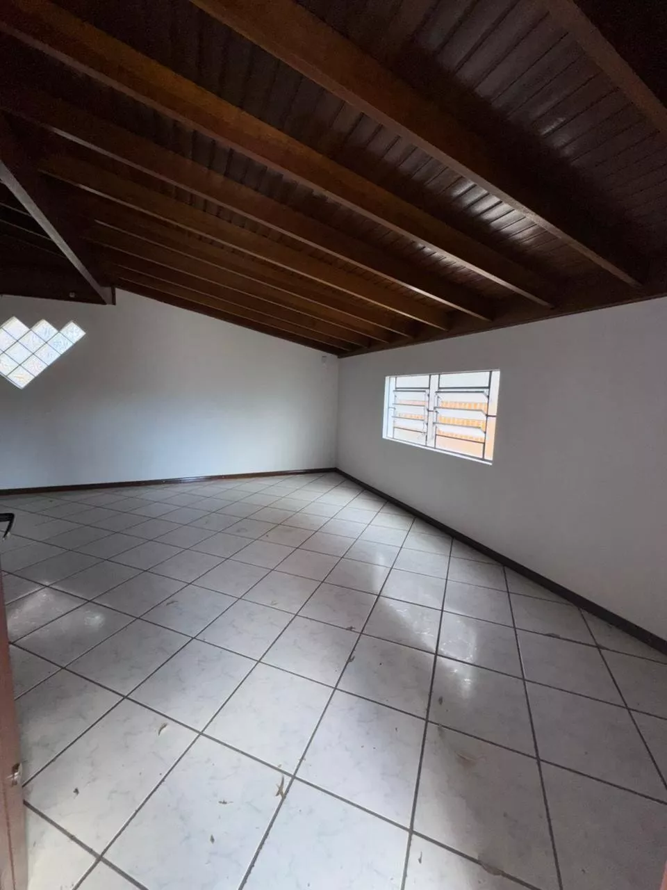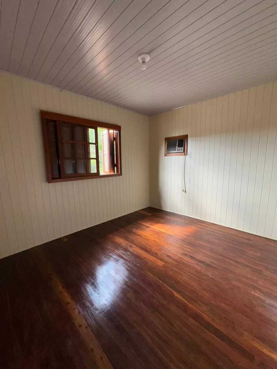 Casa de construção mista (alvenaria e madeira) composta por sala de estar e cozinha integradas, três dormitórios, 2 banheiros, área de serviço, depósito e área de salão de festas.