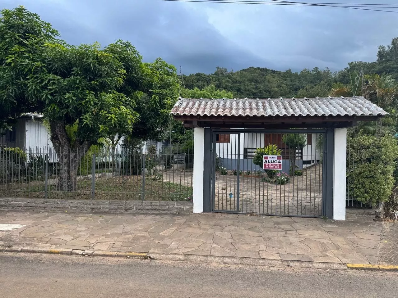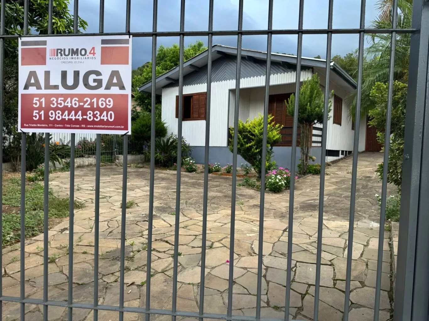 Terreno cercado com grades metálicas e portão eletrônico.