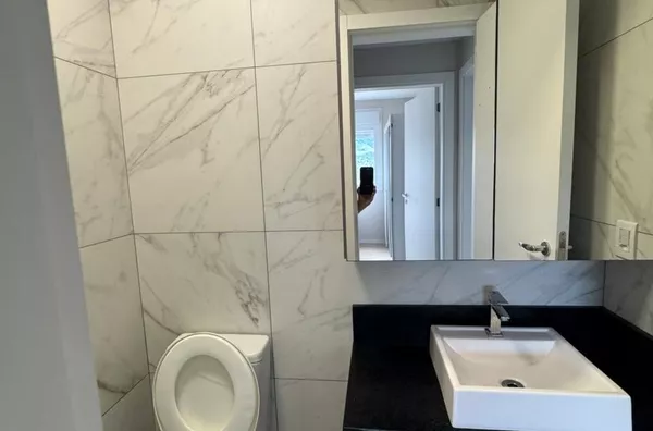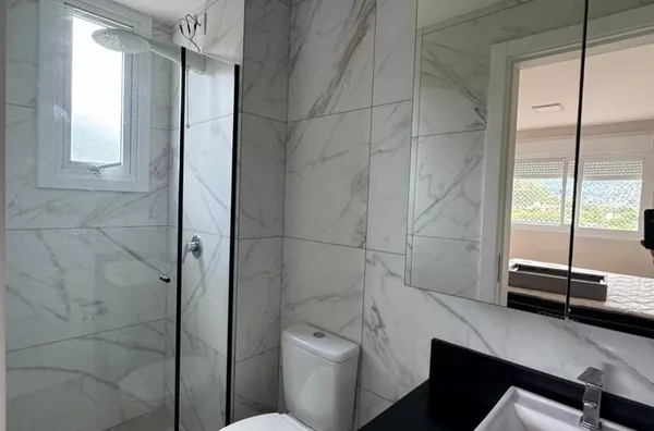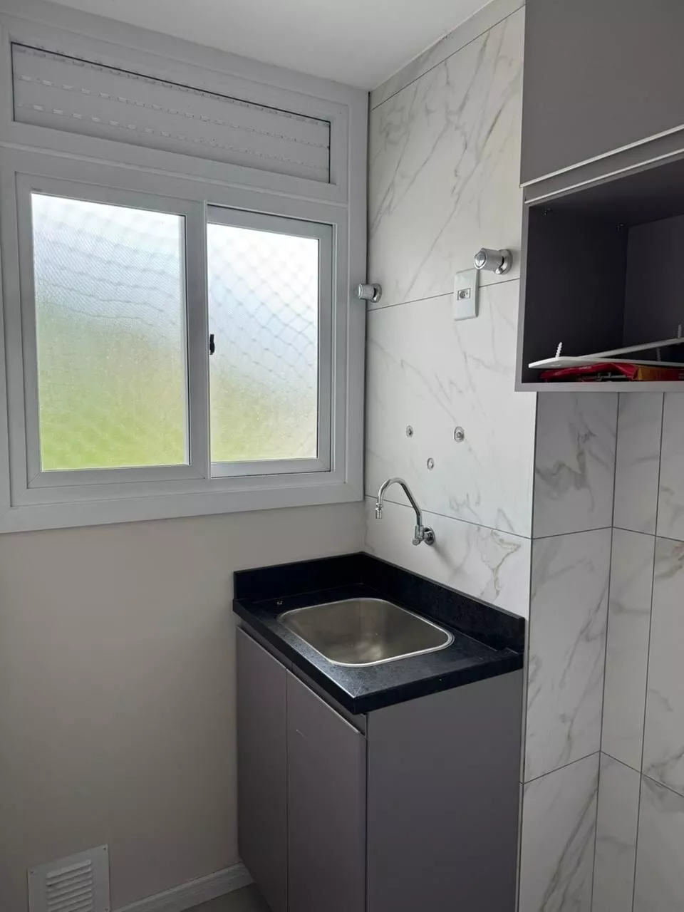 Apartamento semi-mobiliado com móveis sob medida. Telas de proteção nas janelas e sacada.