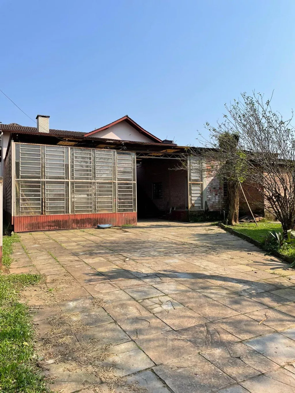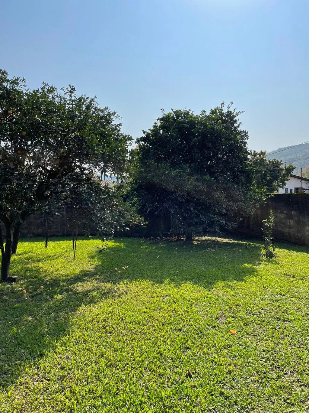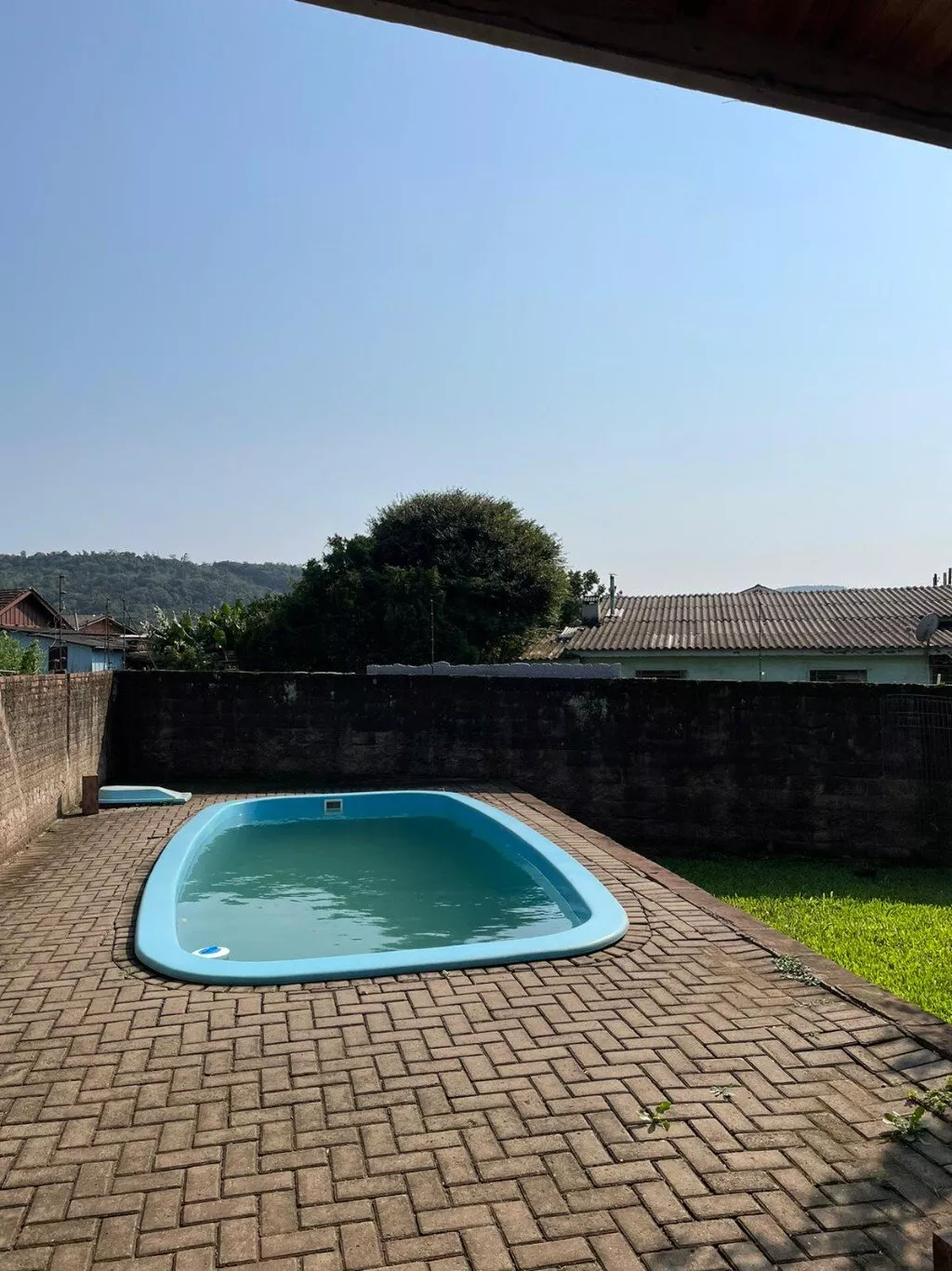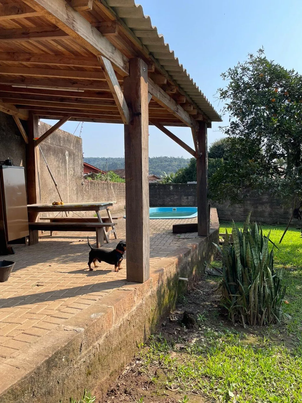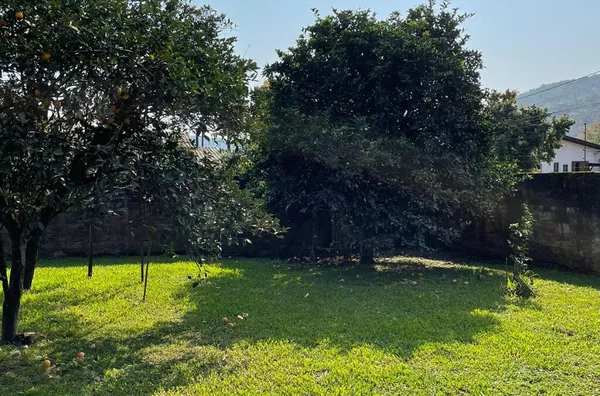 São 2 terrenos (+/- 950m2), pátio todo cercado com muro e grades. Jardim com grama e folhagens, flores…possui piscina e churrasqueira para lazer.