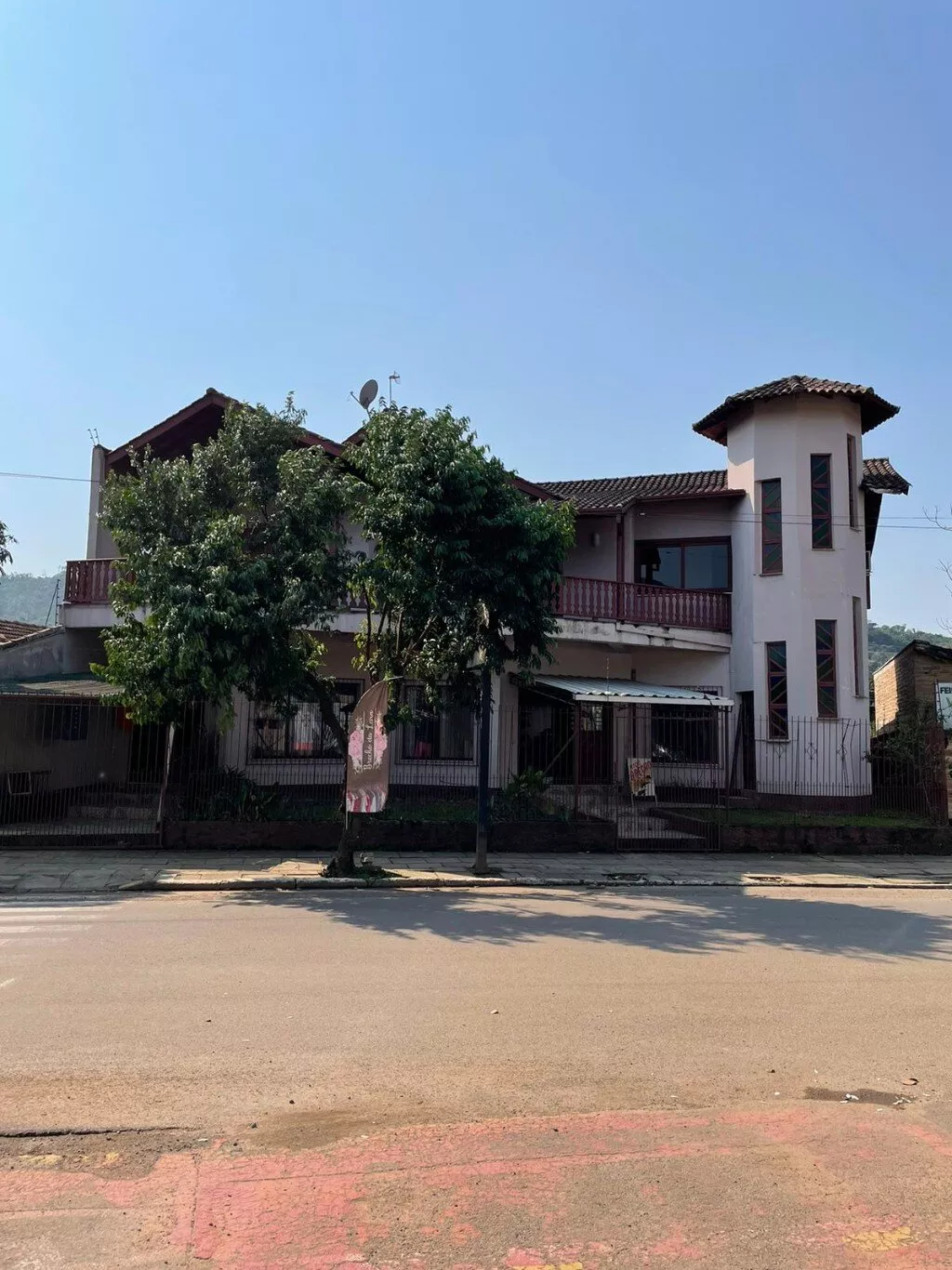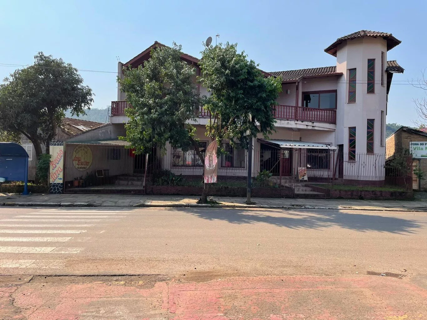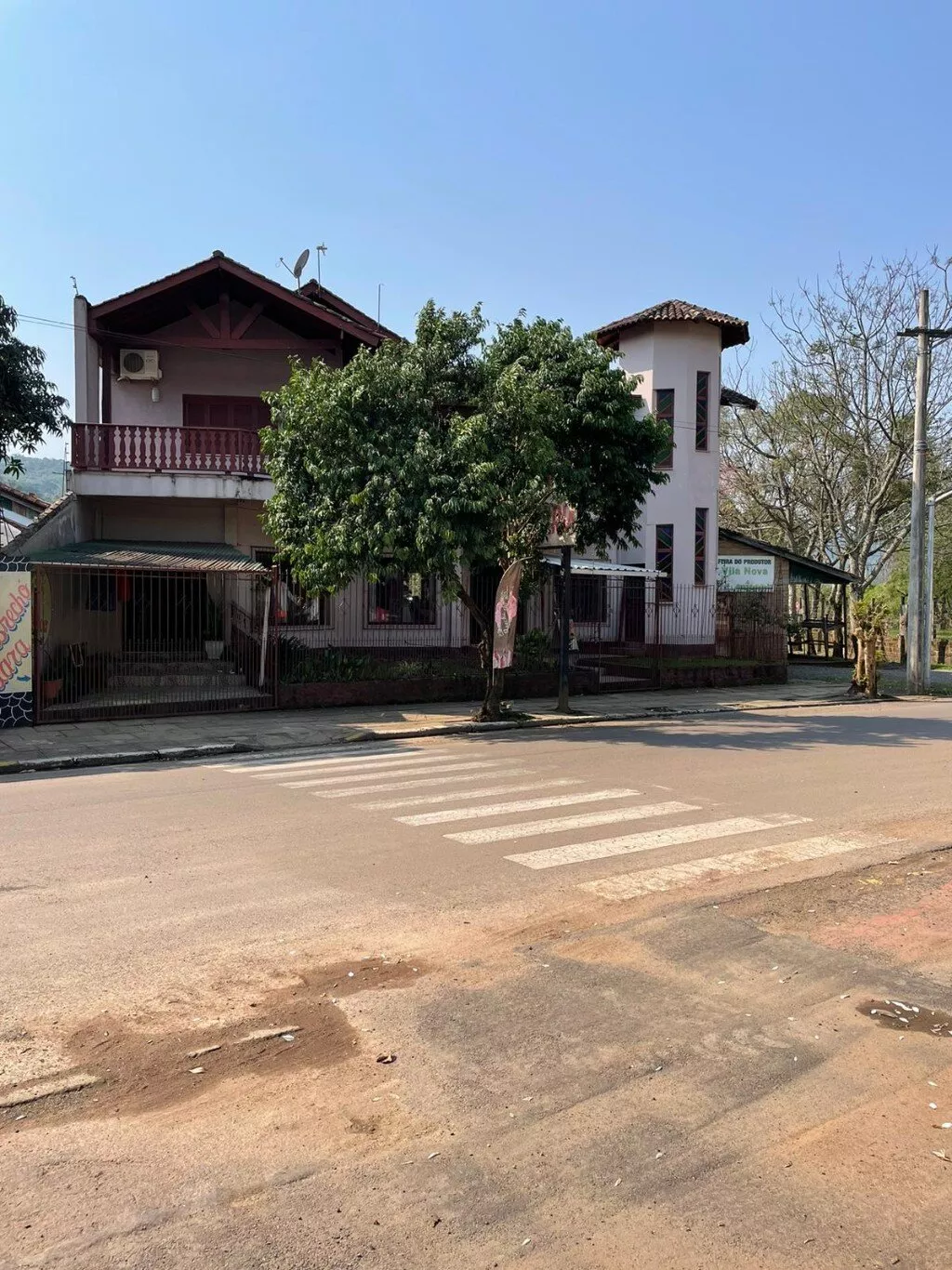 Pavimento inferior, são 2 banheiros, garagem (fundos) para 3/4 carros em aproximados 300m2 de área construída. No local já teve comércios como mercado, agropecuária e loja de roupas.