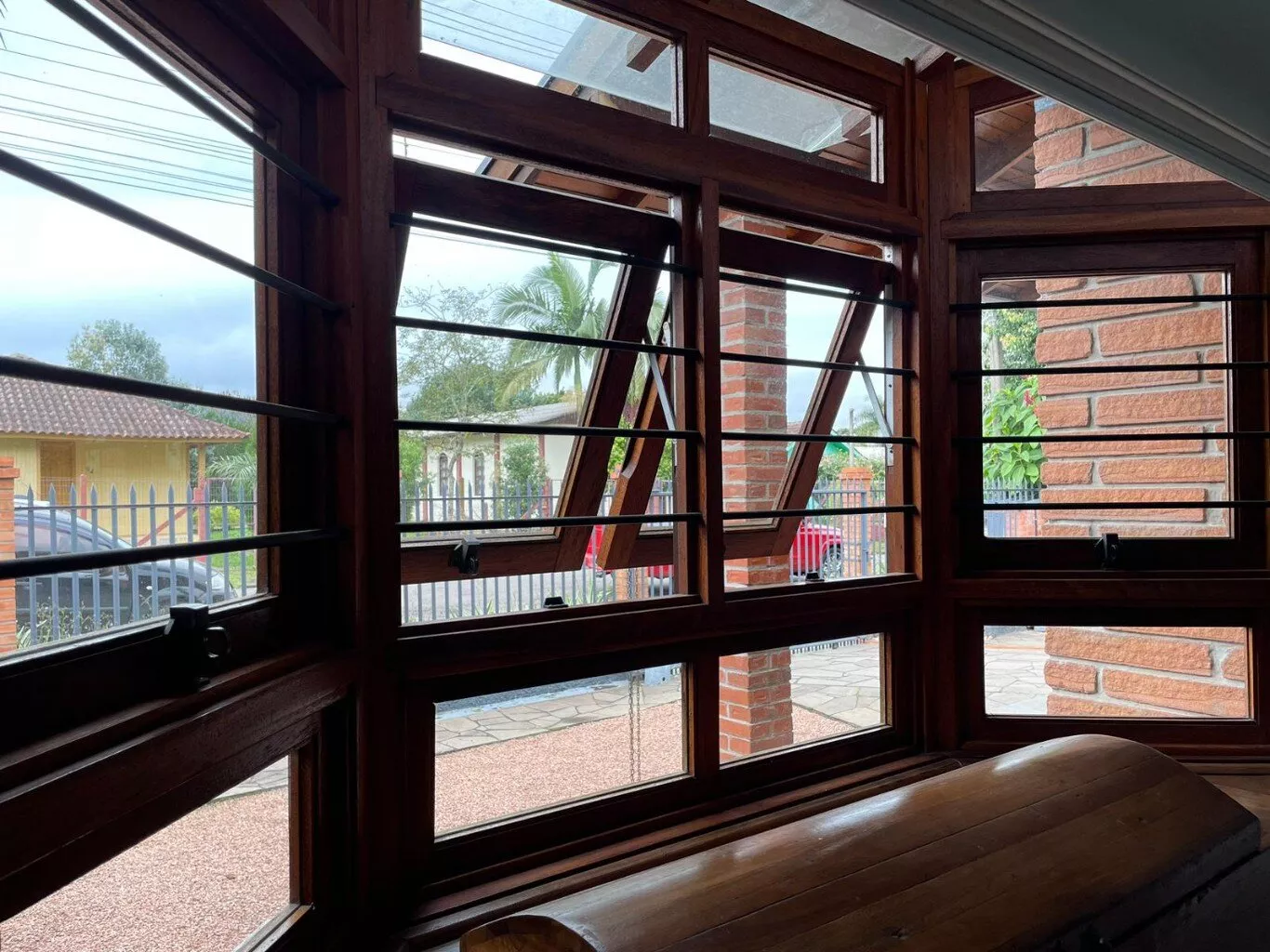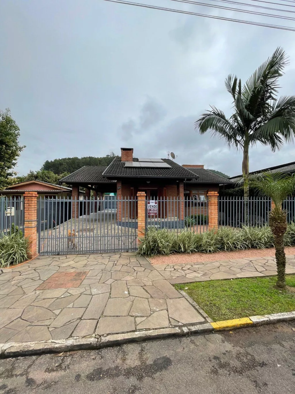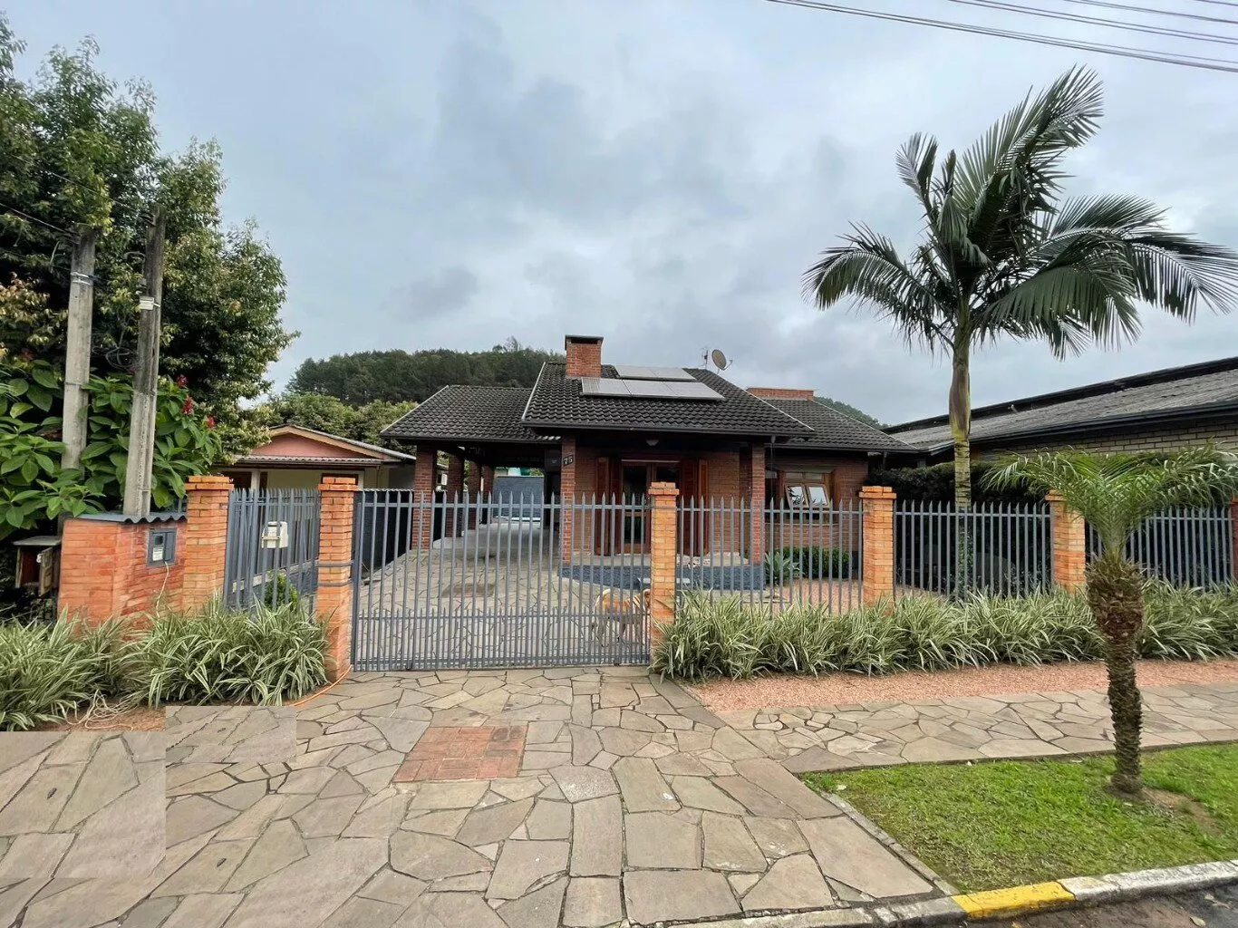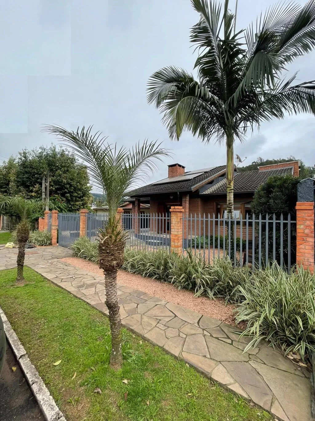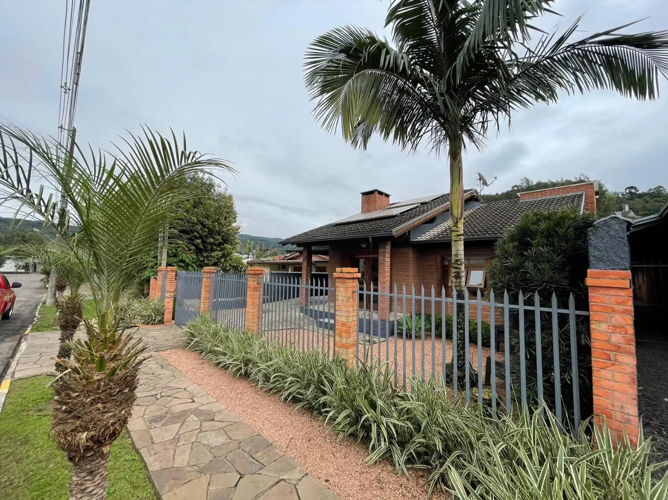 Abrigo lateral para 1 veículo, calçada e jardins.