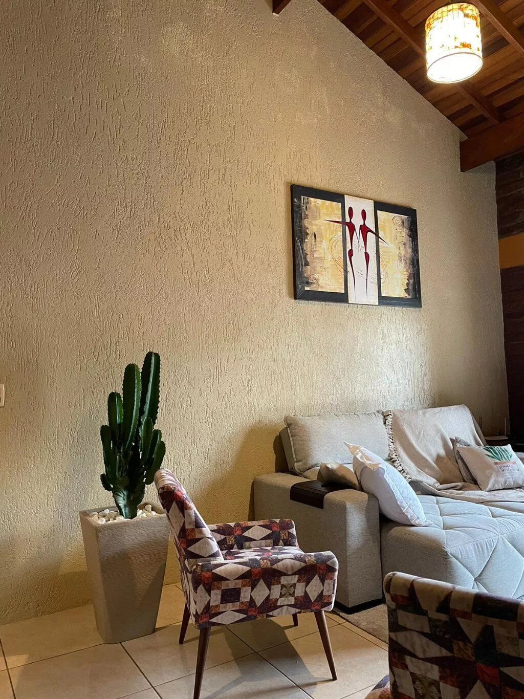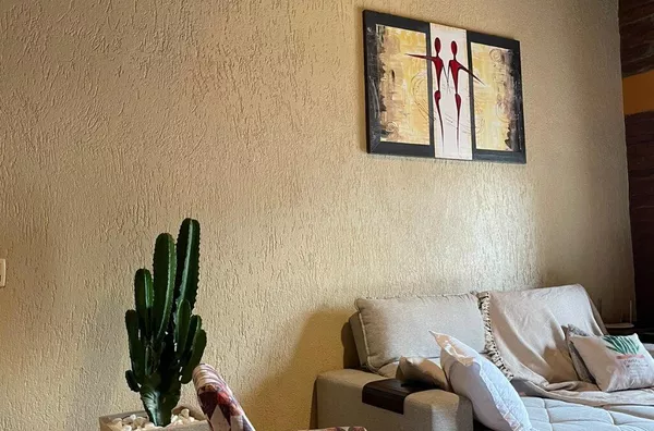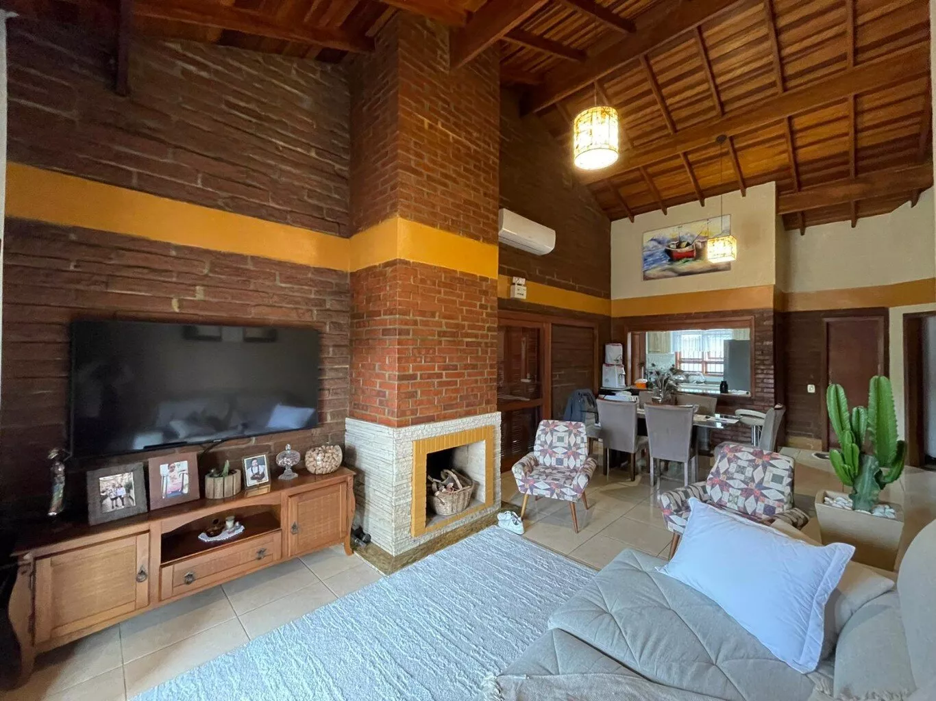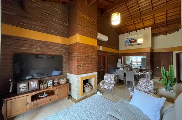 Área construída com aproximadamente 150m2, distribuídos em 2 dormitórios (sendo suíte americana com banheira), 1 banheiro social, cozinha, bancada, sala de estar com lareira e pé direito alto, lavanderia. Quarto principal com janela bay window.