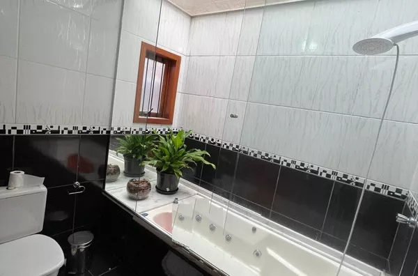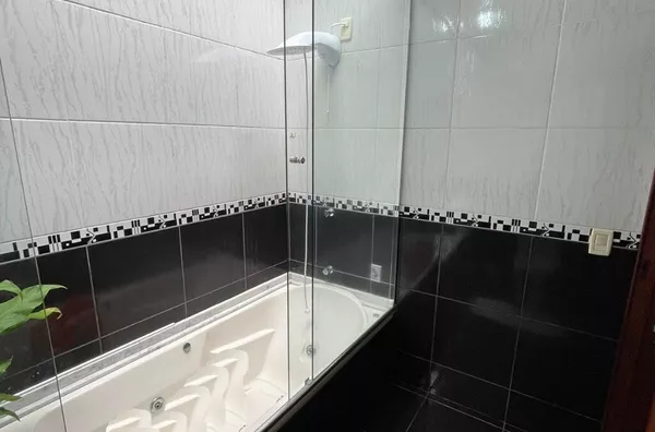 Piscina (espaço para quiosque), placa solar, água de poço, telha de cimento, calhas, muros e grades em um terreno de 360m2.