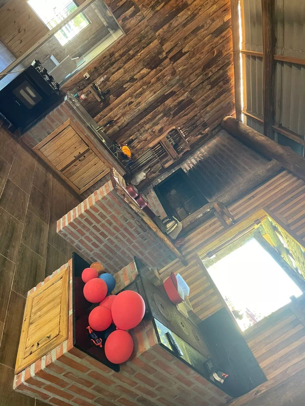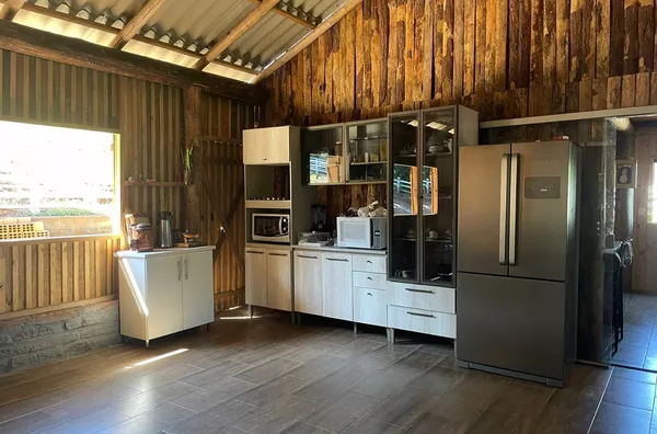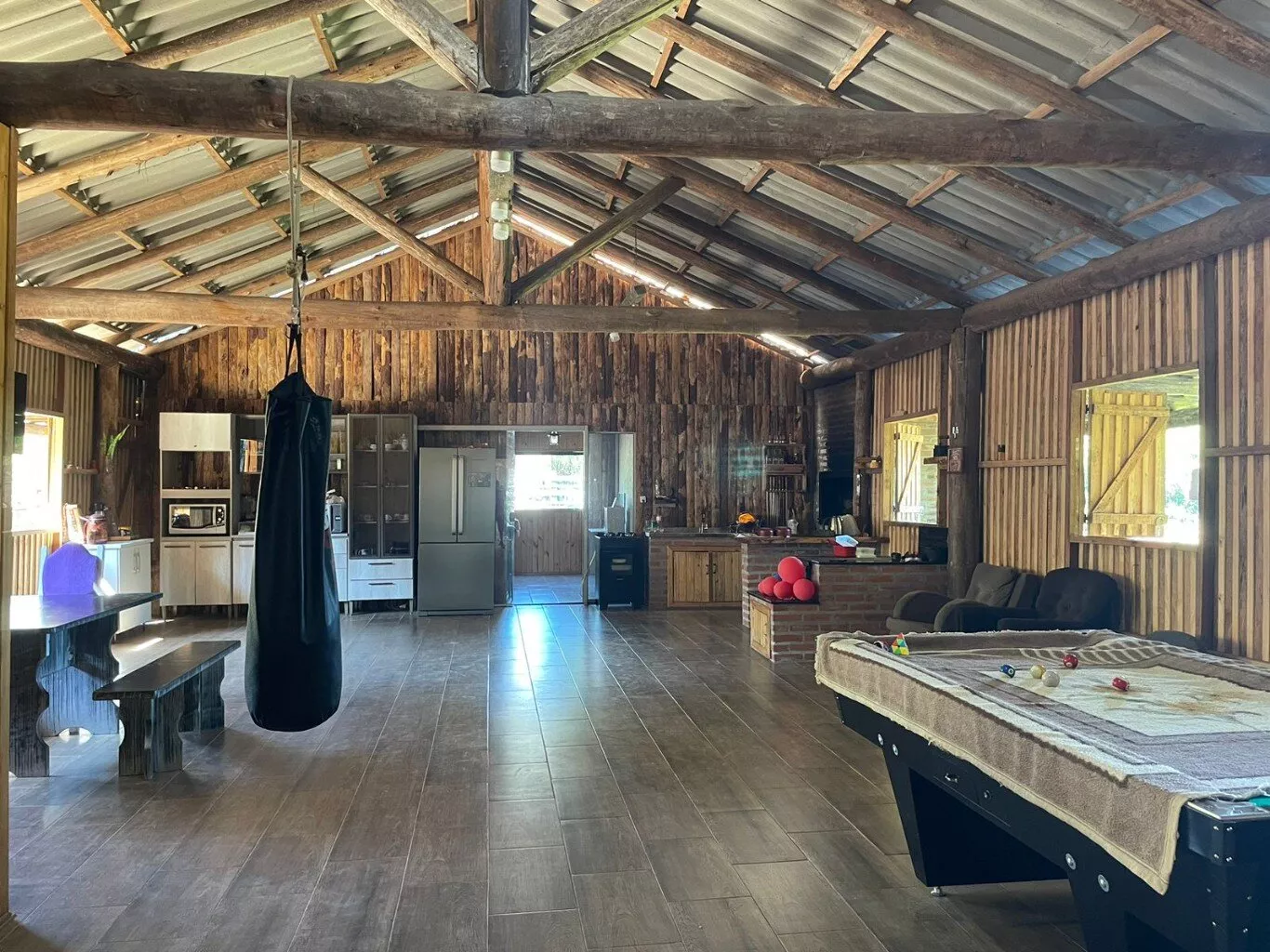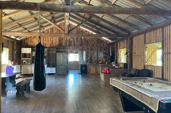 Galpão com aprox. 160m2, possuindo 1 dormitório (na parte superior), 1 banheiro, lavanderia, cozinha equipada com fogão campeiro, bancada. Piso todo em cerâmica.