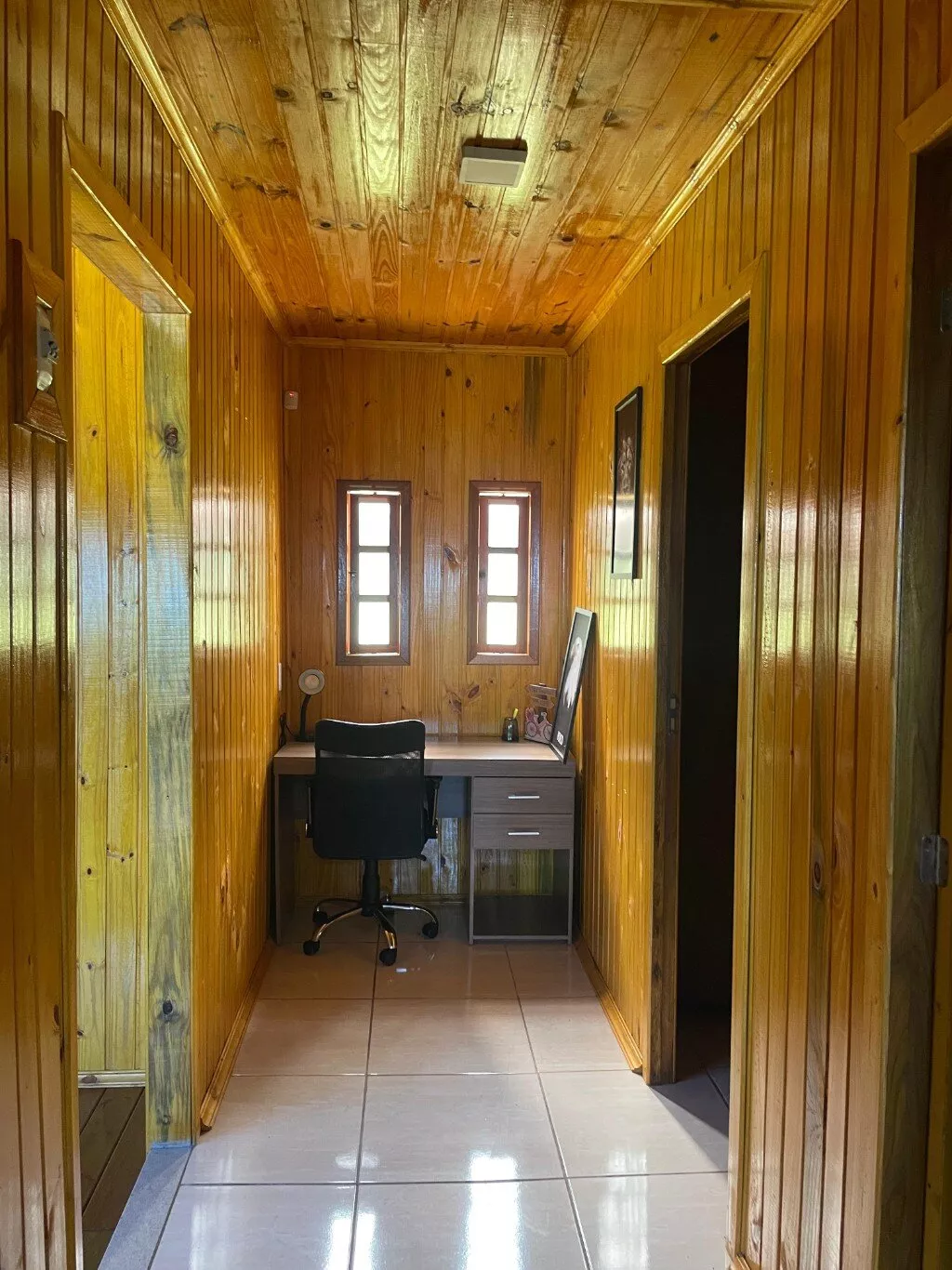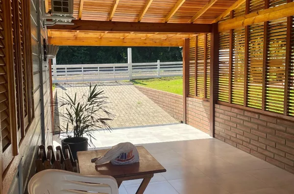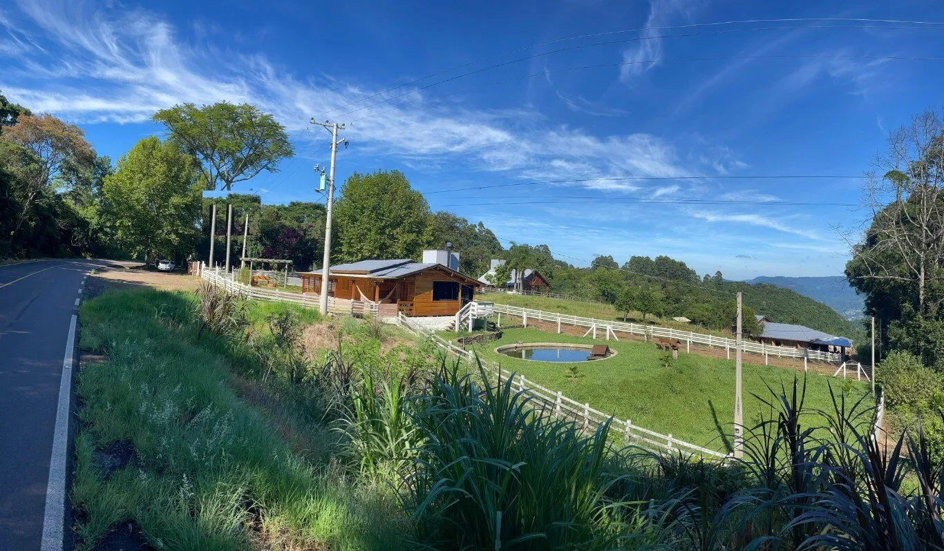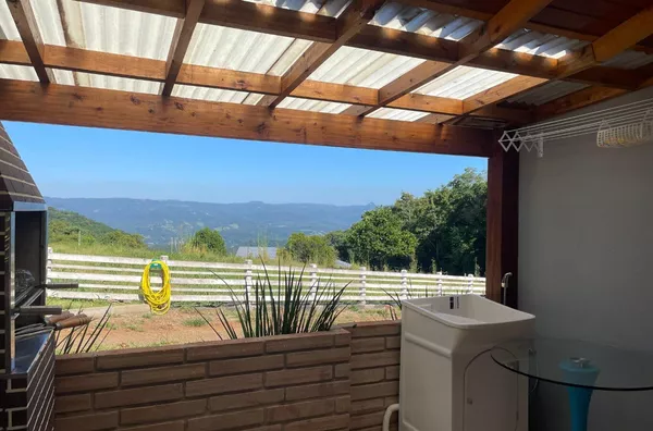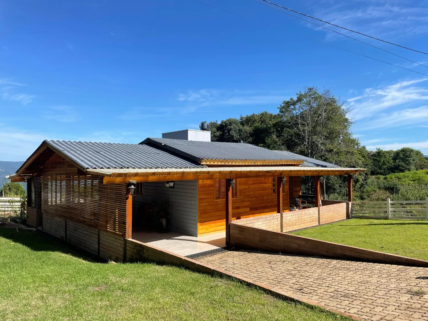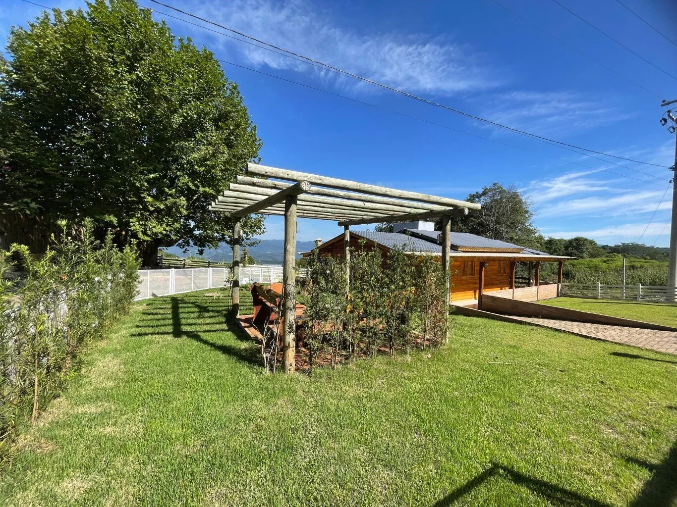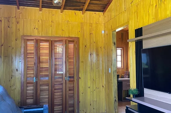 Mais ao fundo da propriedade, uma chalé de madeira, piso cerâmico, com aprox. 50m2, distribuído em 1 dormitório, sala e cozinha integrados, lavanderia e vista para o vale, centro da cidade de Três Coroas.