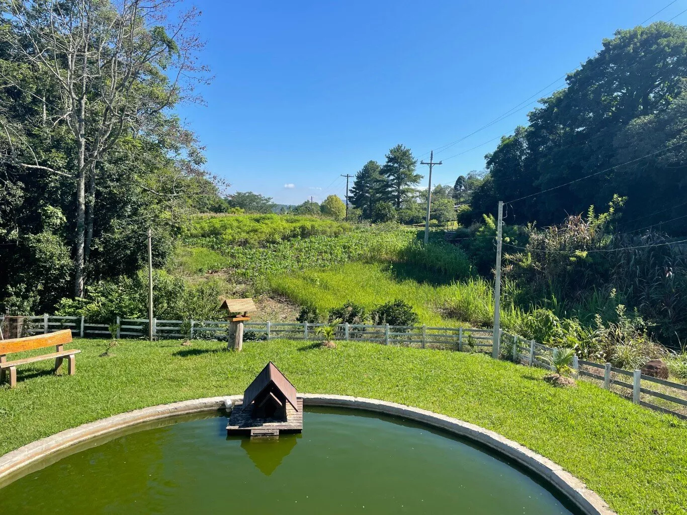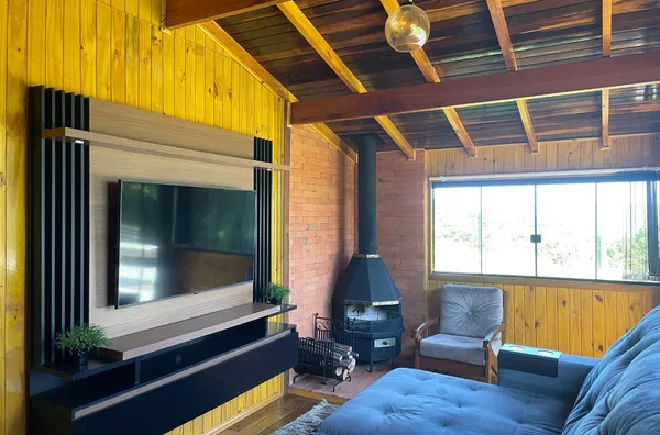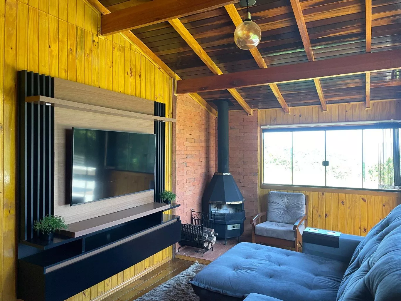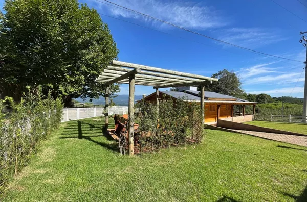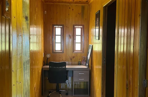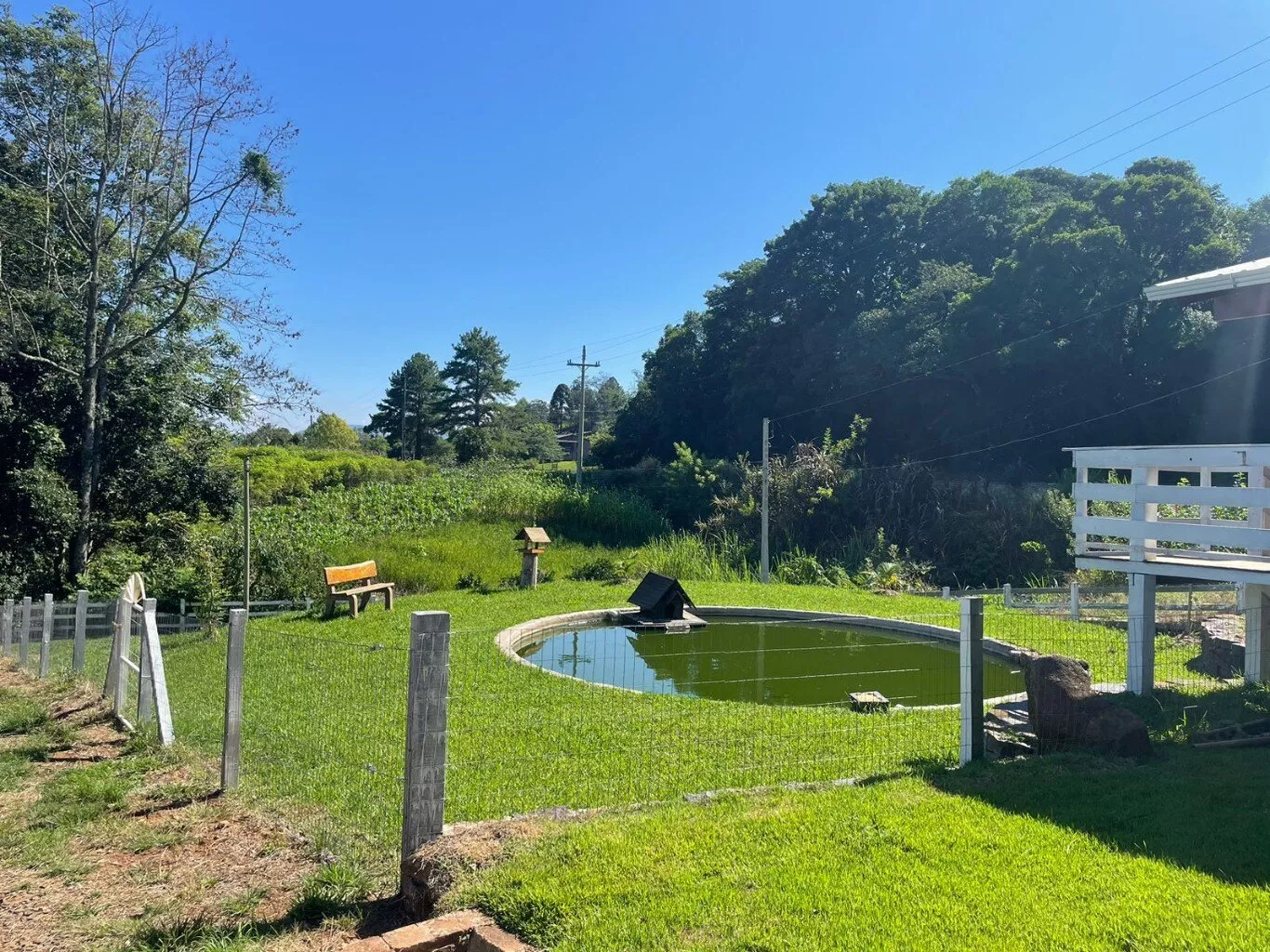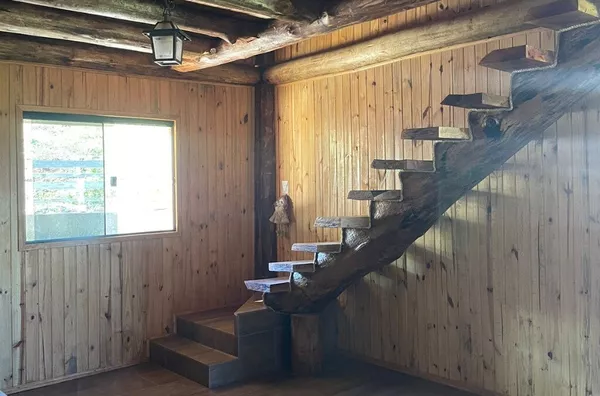 Mais ao fundo da propriedade, uma chalé de madeira, piso cerâmico, com aprox. 50m2, distribuído em 1 dormitório, sala e cozinha integrados, lavanderia e vista para o vale, centro da cidade de Três Coroas.