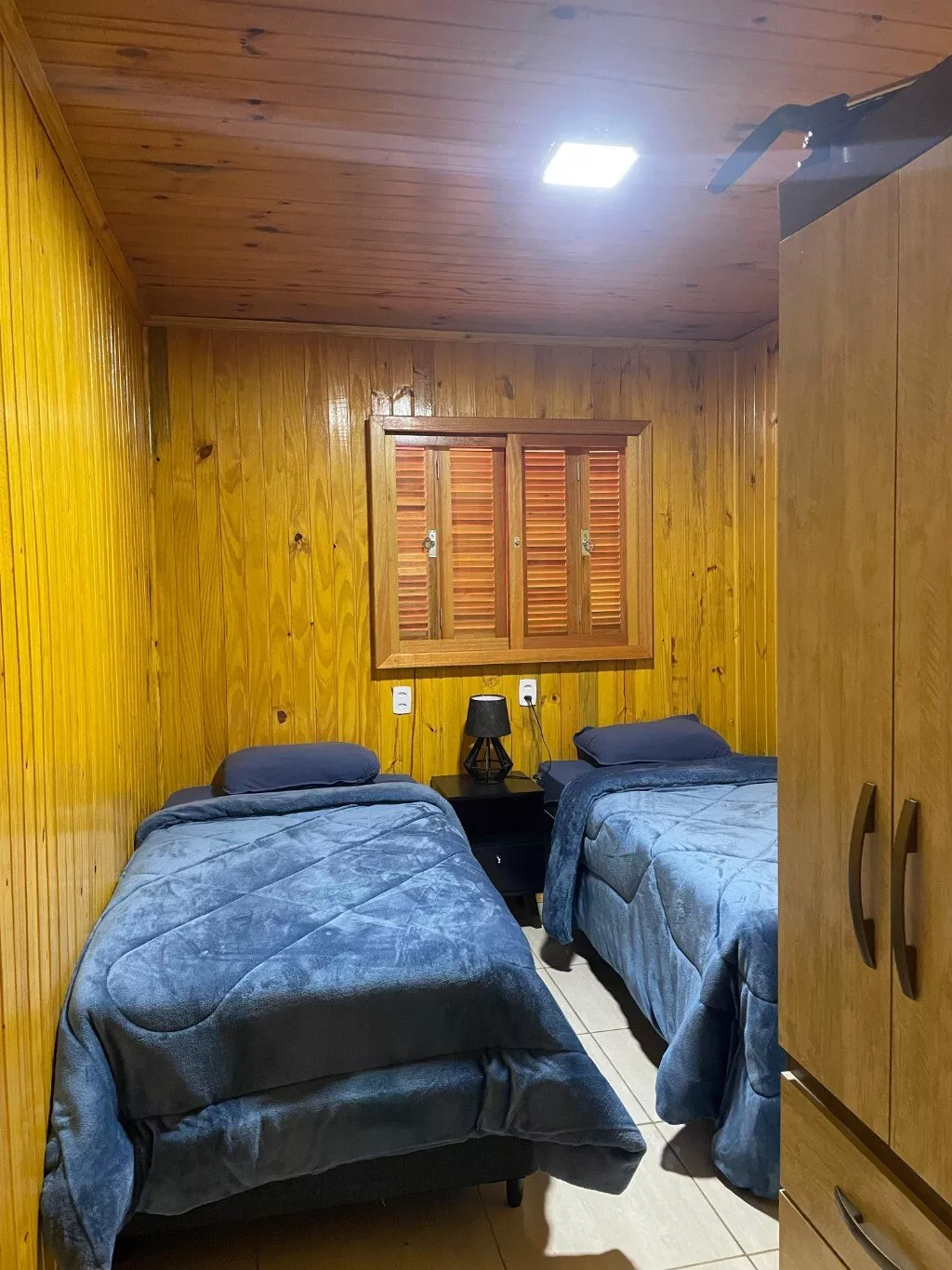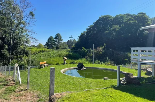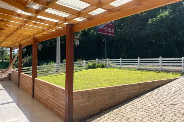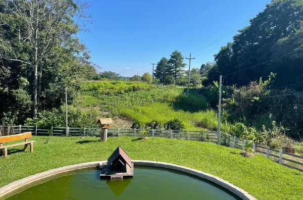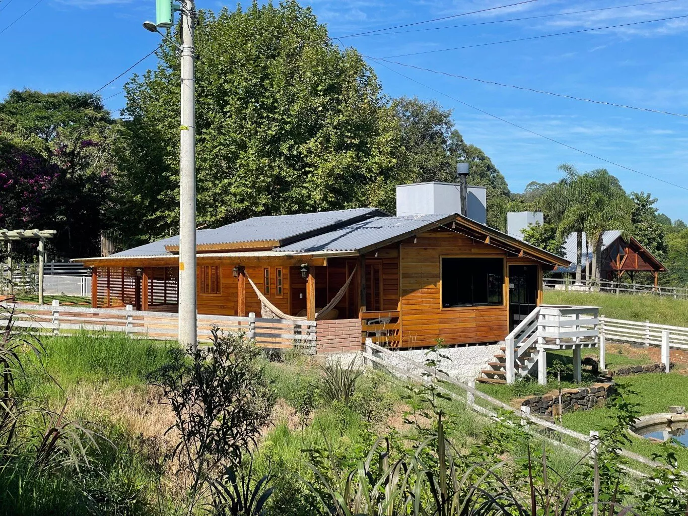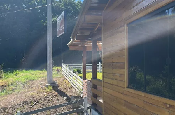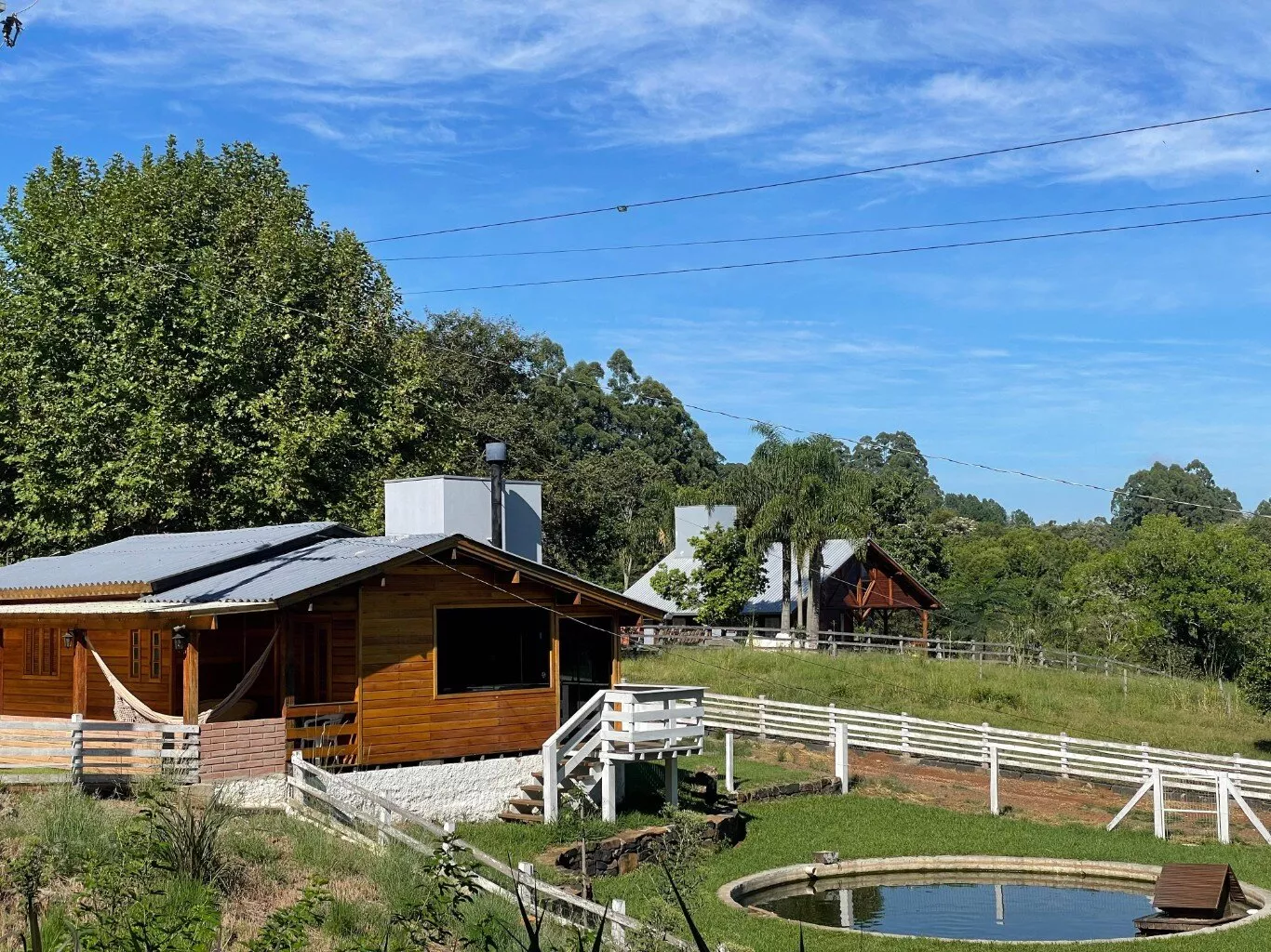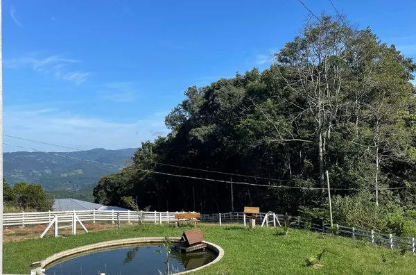 Mais ao fundo da propriedade, uma chalé de madeira, piso cerâmico, com aprox. 50m2, distribuído em 1 dormitório, sala e cozinha integrados, lavanderia e vista para o vale, centro da cidade de Três Coroas.