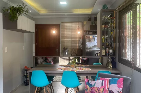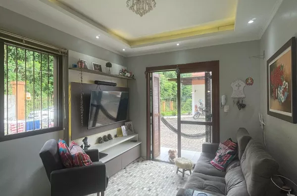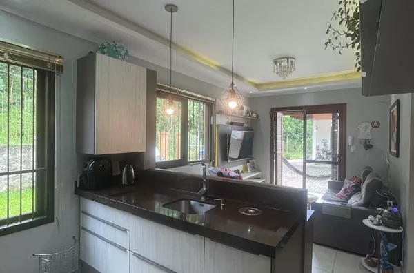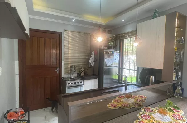 Casa geminada para venda, em Três Coroas. Localizada no bairro Sander, medindo 56.95m2 de área construída e privativa. Composta por sala e cozinha integrados, 2 dormitórios, 1 banheiro, lavanderia com churrasqueira e 1 vaga de garagem.