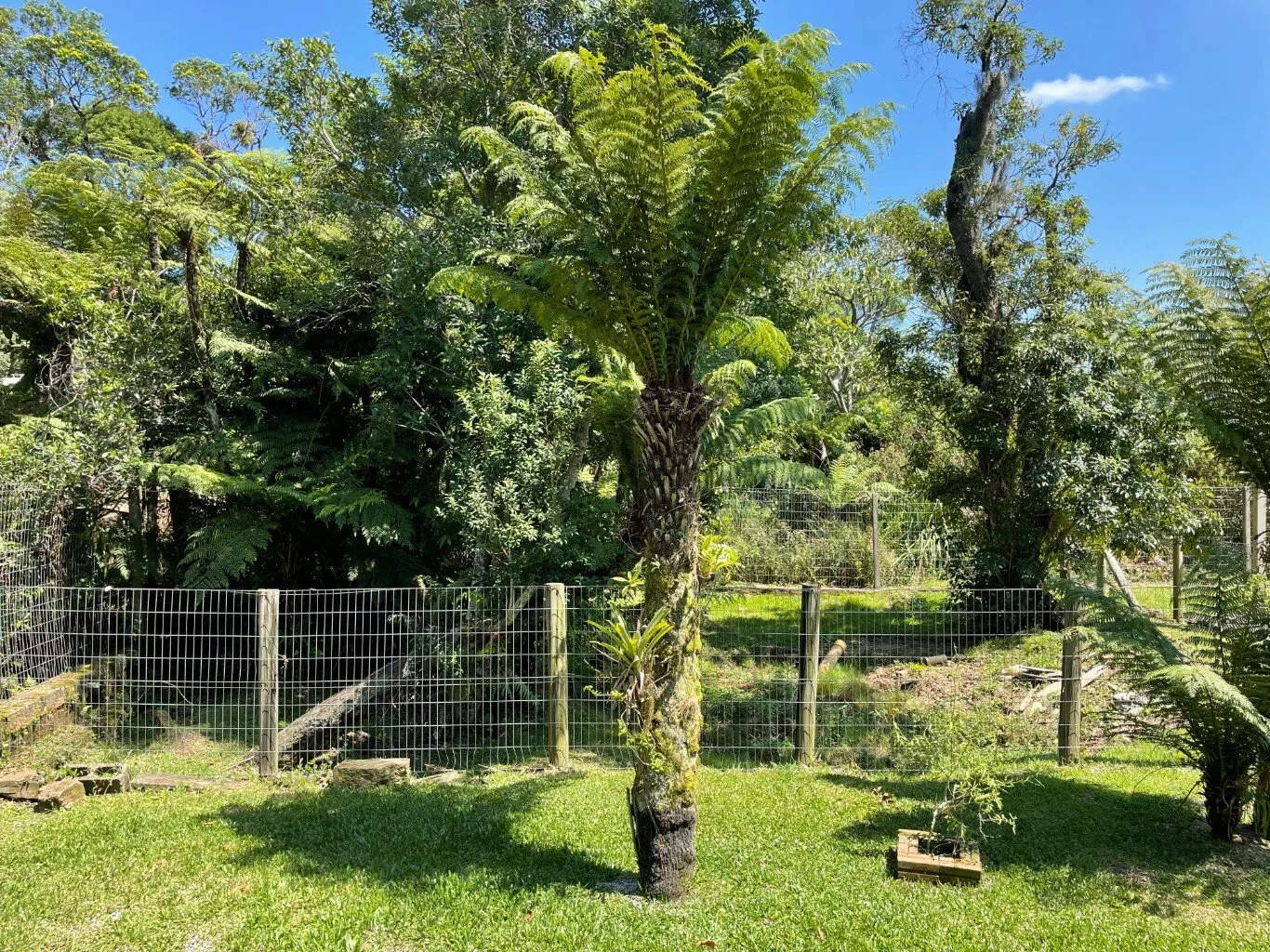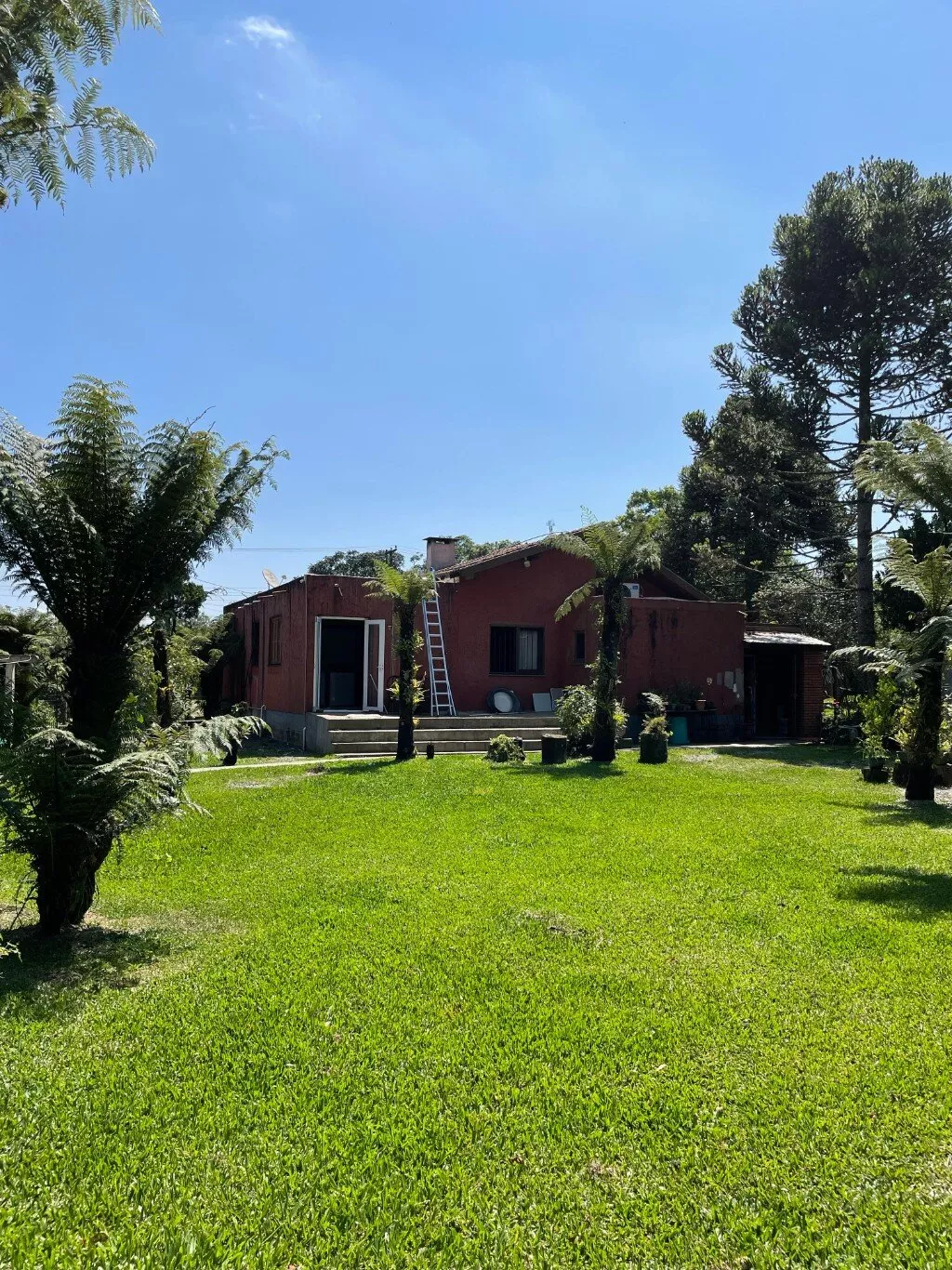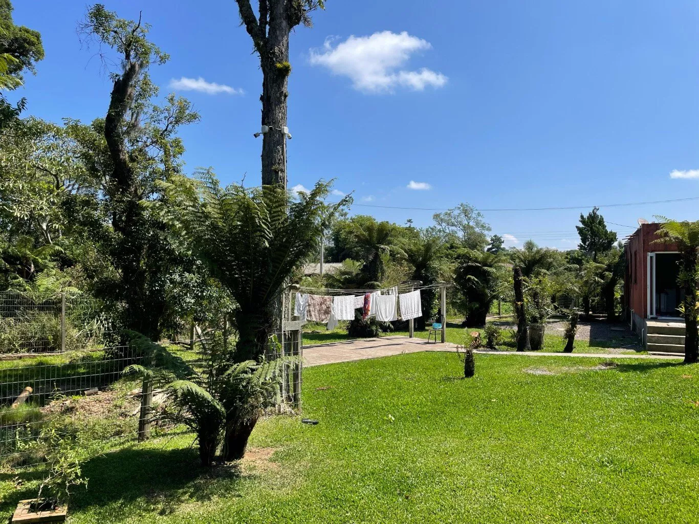 Nos fundos, casa rústica de madeira (sem banheiro), mezanino. Ampla vista do jardim.