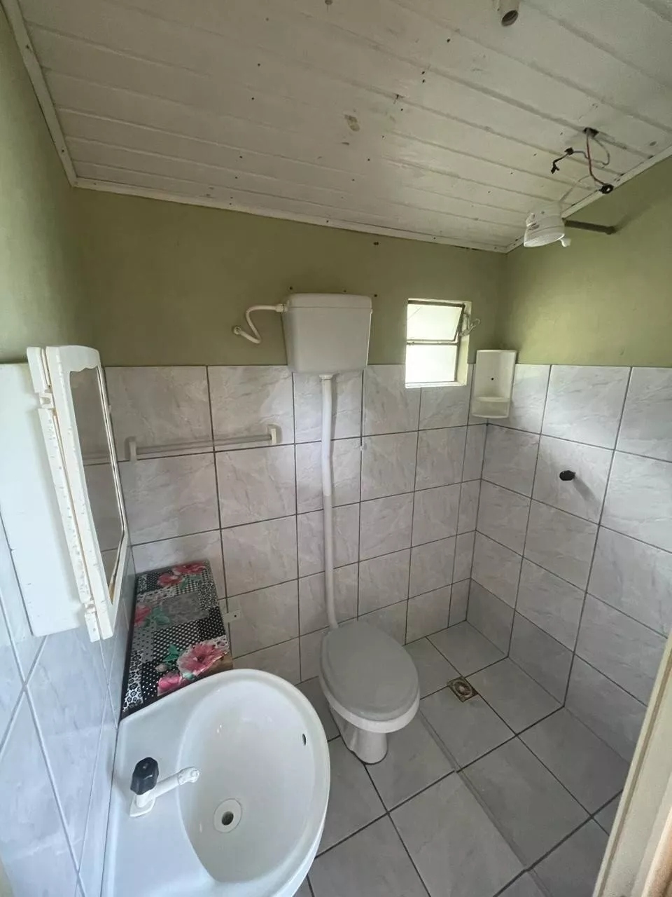 2 casas, cada uma com 40m2, compostas por 2 dormitórios, sala e cozinha integrados, 1 banheiro. Área frontal e lavanderia nos fundos de cada residência.