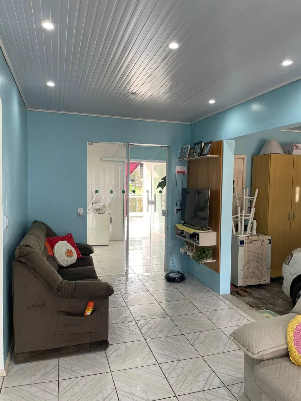 Casa com ótimos acabamentos, portas internas de vidro, de correr, proporcionando maior espaço interno e de integração de ambientes.