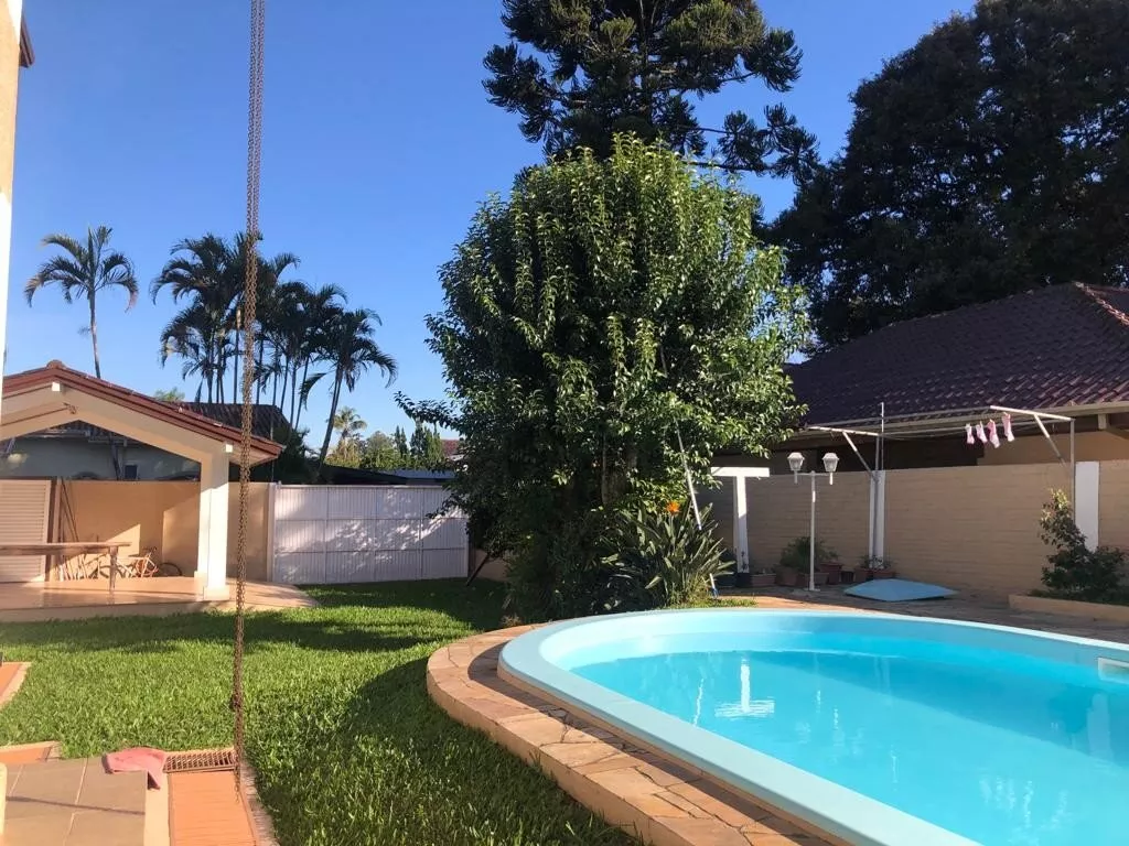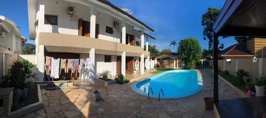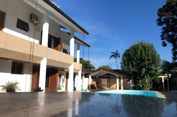 Com aproximadamente 480m2 de área construída e privativa, este excelente imóvel é distribuído em 2 pavimentos. Possui 3 dormitórios com closet, (dormitórios com sacada e vista para piscina), sala de cinema/descanso. Sala de jantar, com bar, lavabo. Cozinha com móveis sob medida, lavanderia com dependências para empregada. Garagem fechada para 3 veículos, composta por churrasqueira, banheiro, mesa e bancos, um salão de festas.