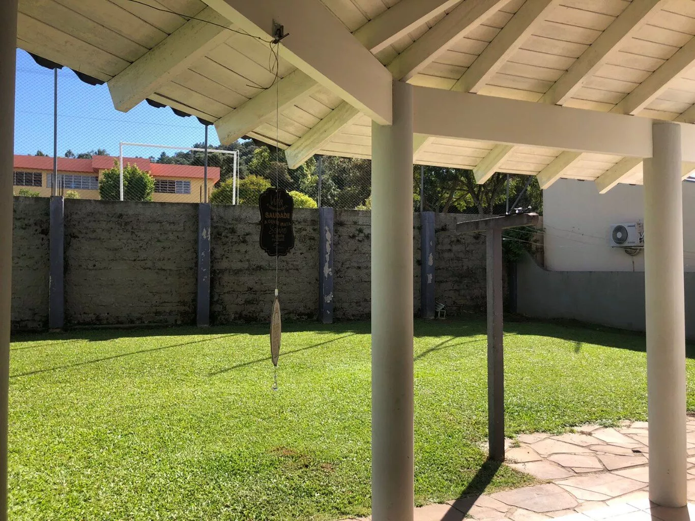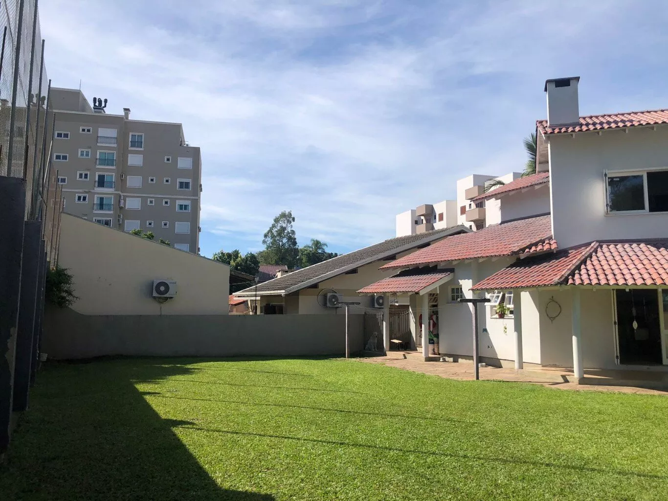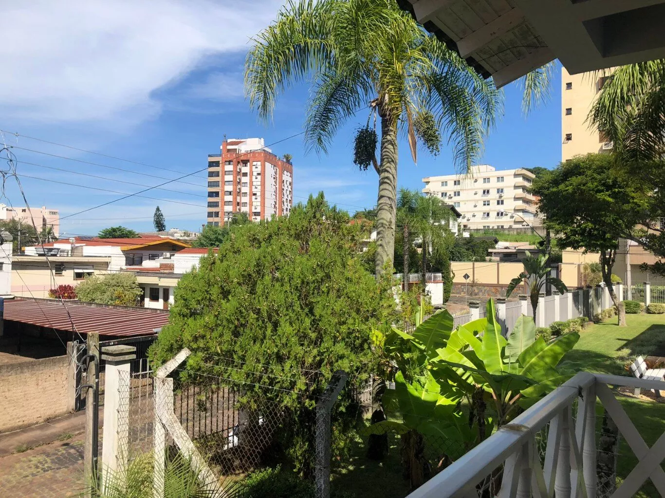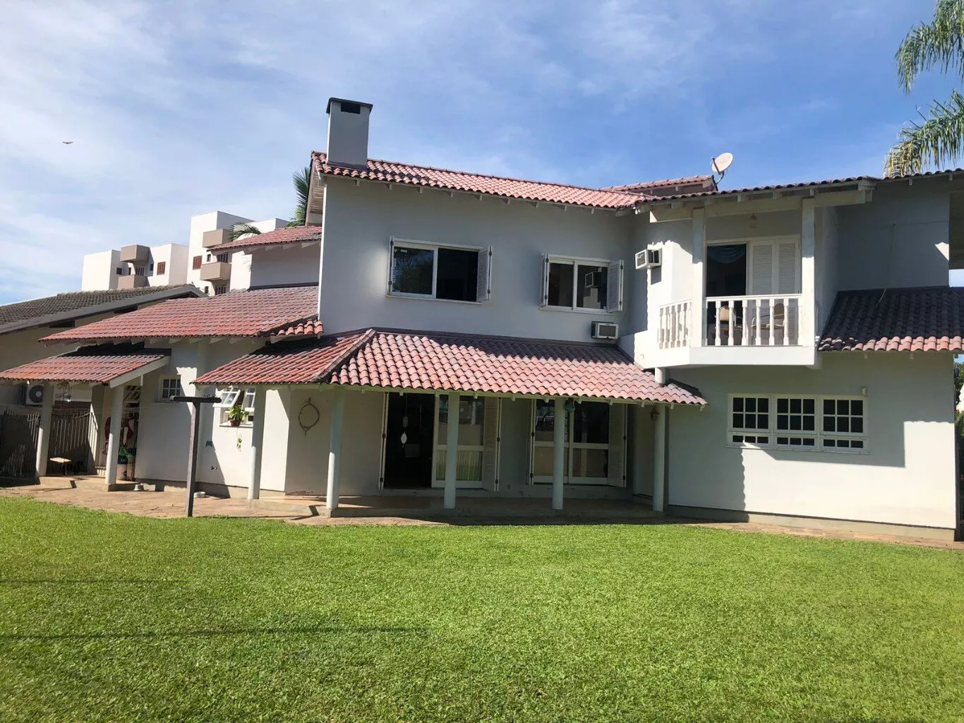 Sacadas, frontal e fundos da casa, amplo espaço de jardim em frente e fundos do terreno.