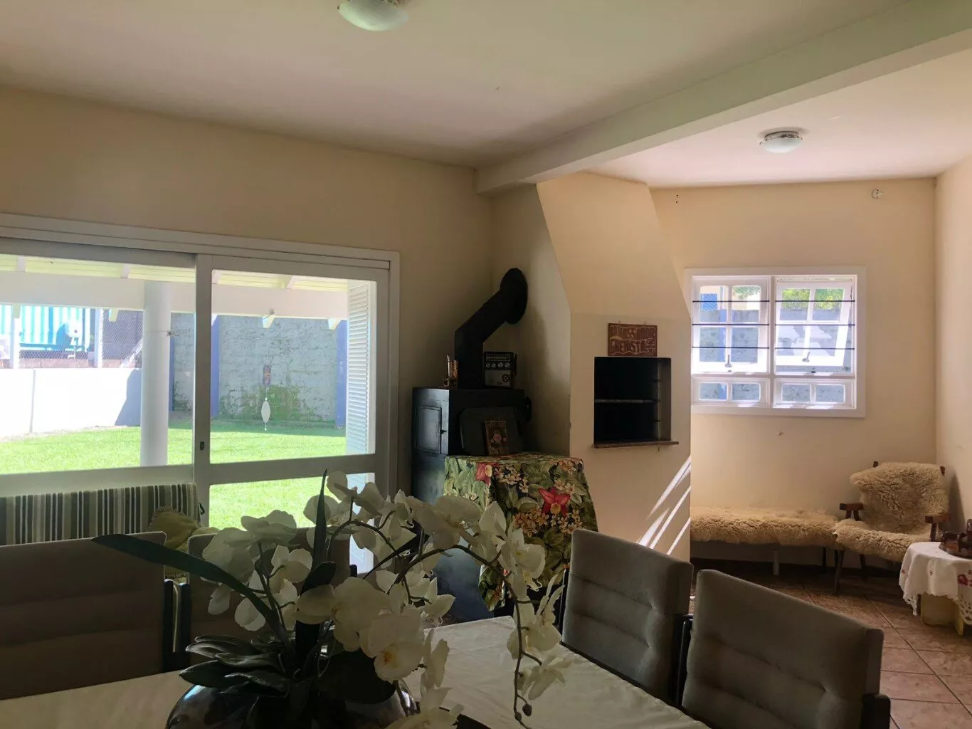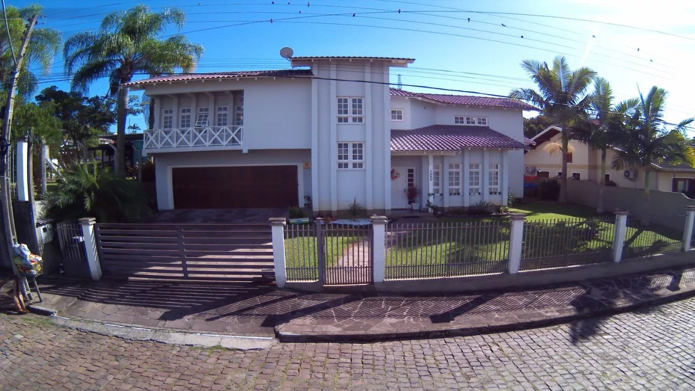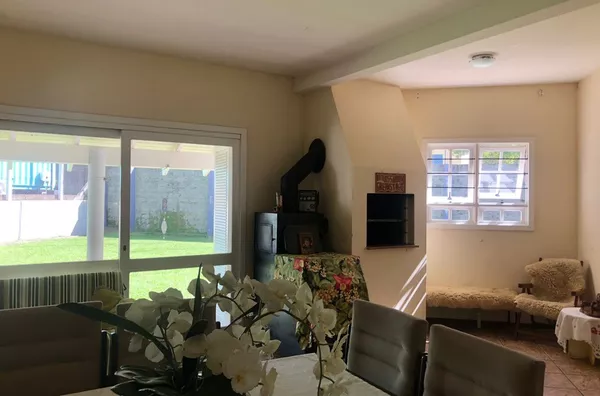 Casa com aproximadamente 242m² de área construídfa, composta por 3 dormitórios (1 suíte com banheira de hidromassagem e closet), sala de estar com lareira, cozinha com churrasqueira e fogão campeiro, lavanderia, despensa, 2 escritórios, garagem para 2 veículos e canil.