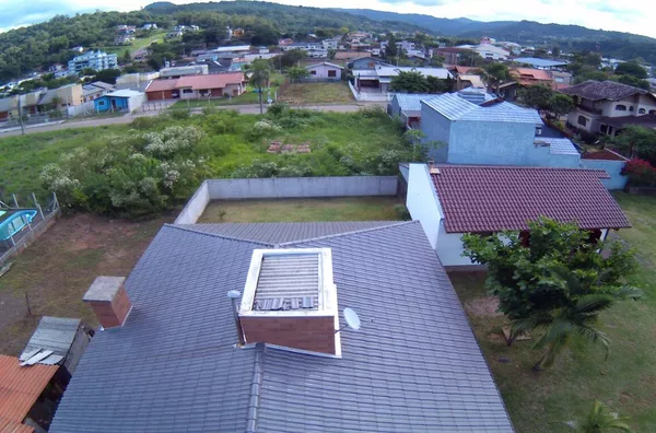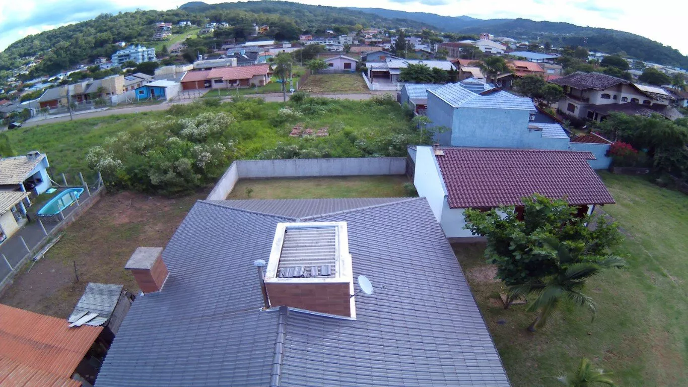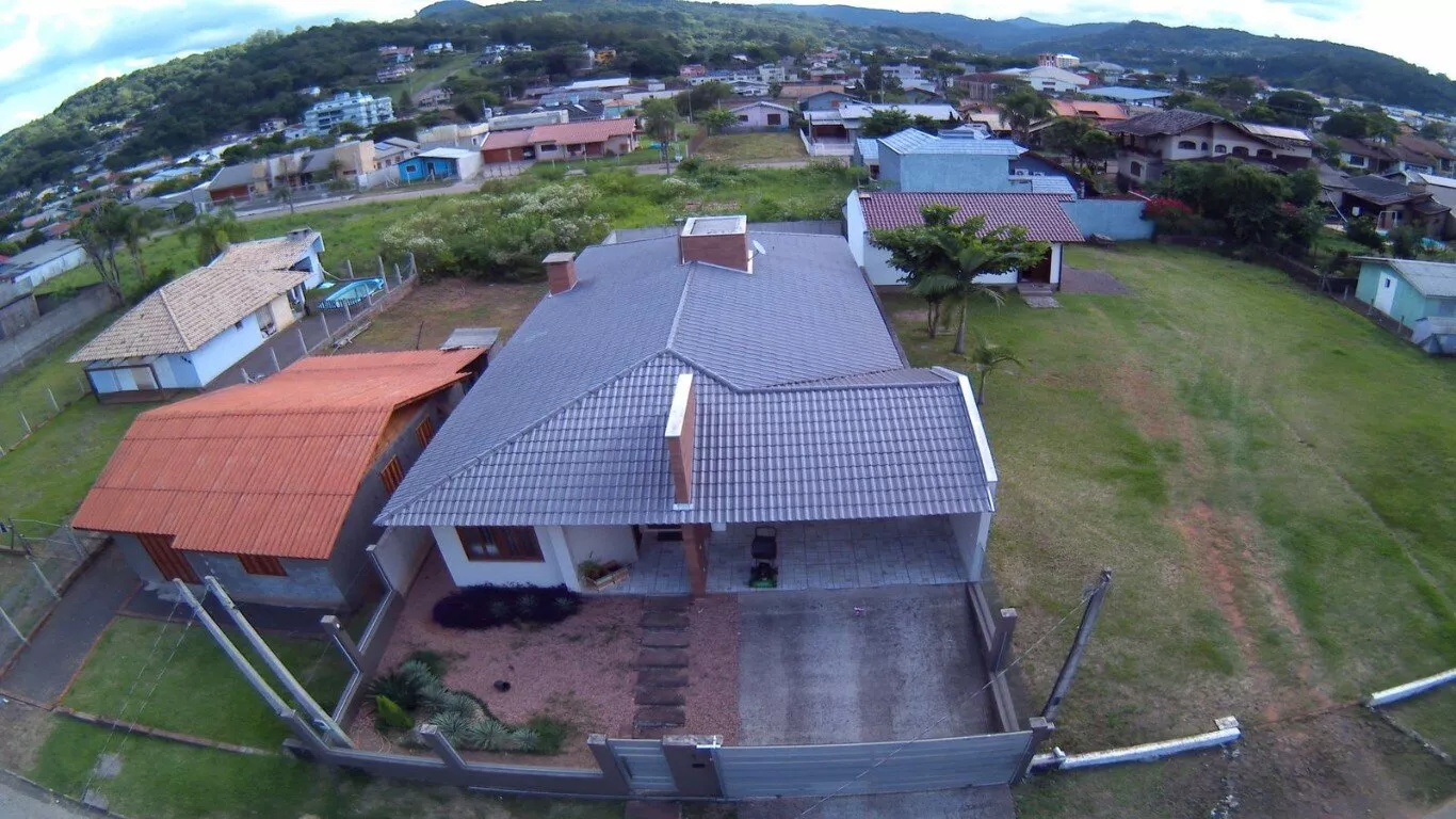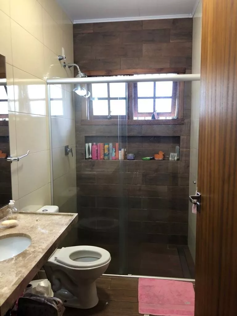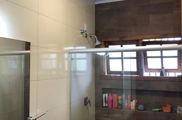Casa em construção sólida, toda em alvenaria, muro em todo pátio e portões na entrada do terreno. Fachada com vidros e colunas de concreto. Nos fundos, terreno plano com grama.