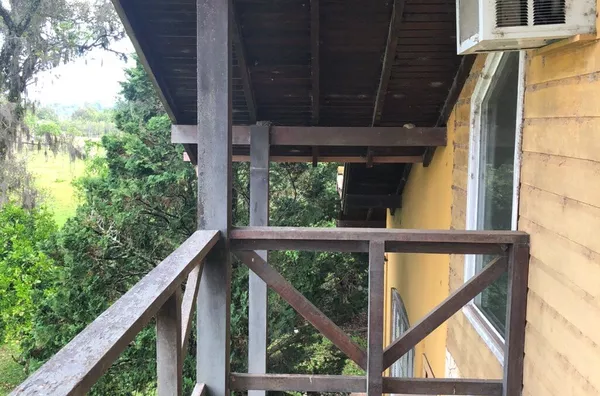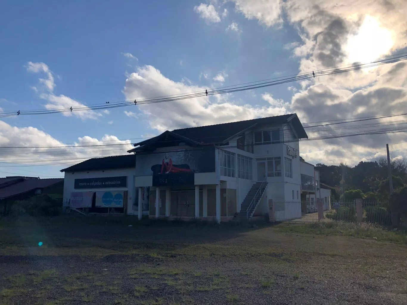 Ao fundo do prédio, encontra-se uma moradia de 02 pisos, medindo aproximadamente 500m², composta por, cozinha ao estilo campeiro, fogão de chapa, churrasqueira, sala de estar e jantar, lavanderia, em um só ambiente. Mais 02 salas de estar (01 com lareira) na frente 01 suíte com banheira e closet. No 2º piso um pequeno mezanino, 02 dormitórios com sacada, banheiro social.