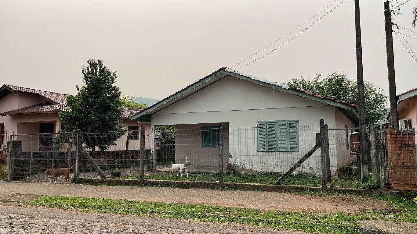 Casa de alvenaria composta por sala de estar, cozinha, três (03) dormitórios, um (01) banheiro, área de serviço e garagem.