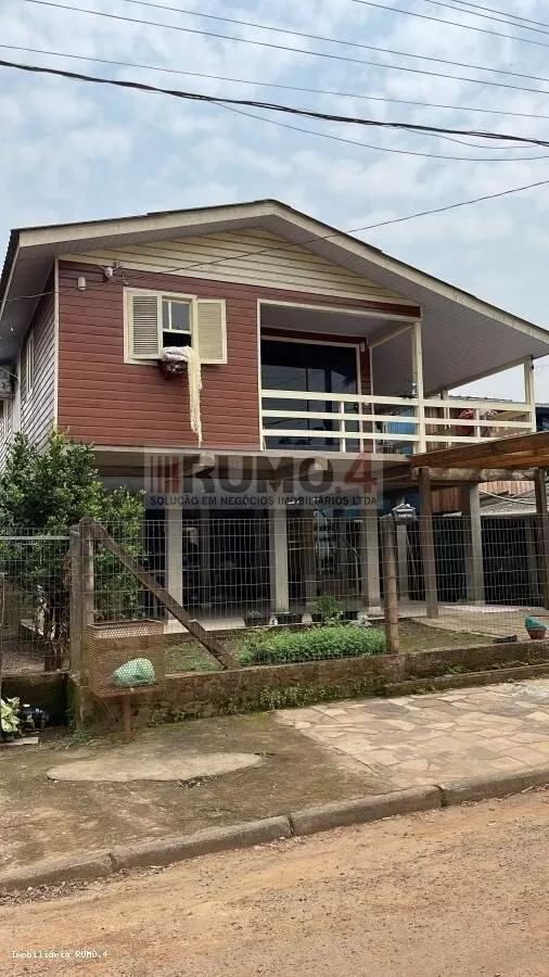 Casa de madeira, composta por 02 pavimentos, sala de estar e jantar integrados, cozinha, 02 dormitórios, 01 banheiro, área na frente, área lateral, área de serviço e garagem aberta.