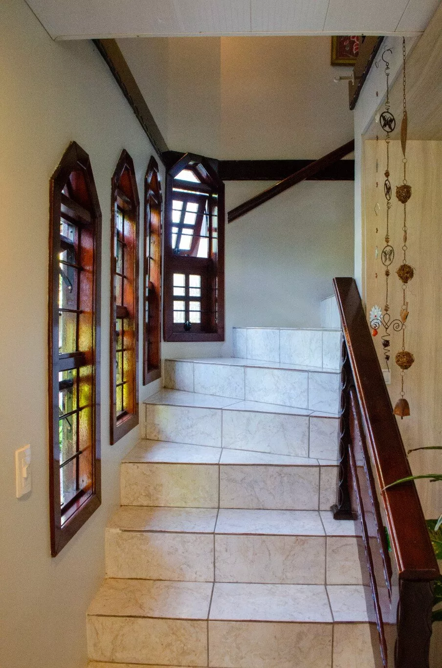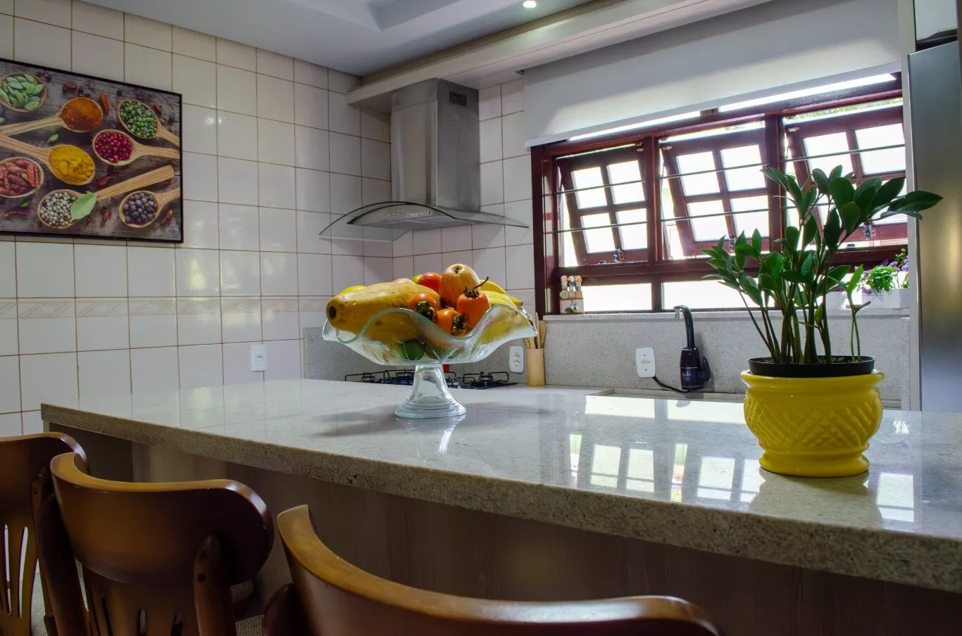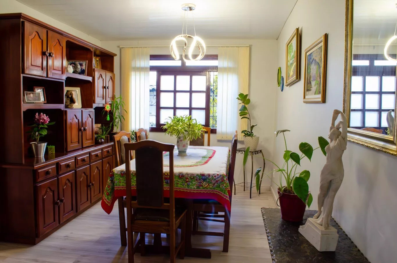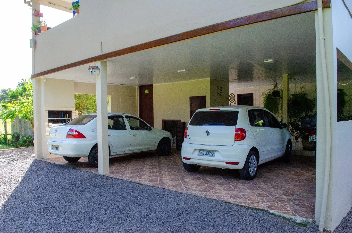 Casa de alvenaria com área de, aproximadamente, 400,00m², com dois pavimentos, sendo primeiro pavimento composto por sala de estar, sala de jantar, cozinha, depósito, uma (01) suíte, um (01) banheiro, área de serviço, garagem para quatro (04) veículos e churrasqueira. Segundo pavimento composto por cinco (02) dormitórios, sendo duas (02) suítes, duas (02) salas de estar, cozinha e área de serviço.