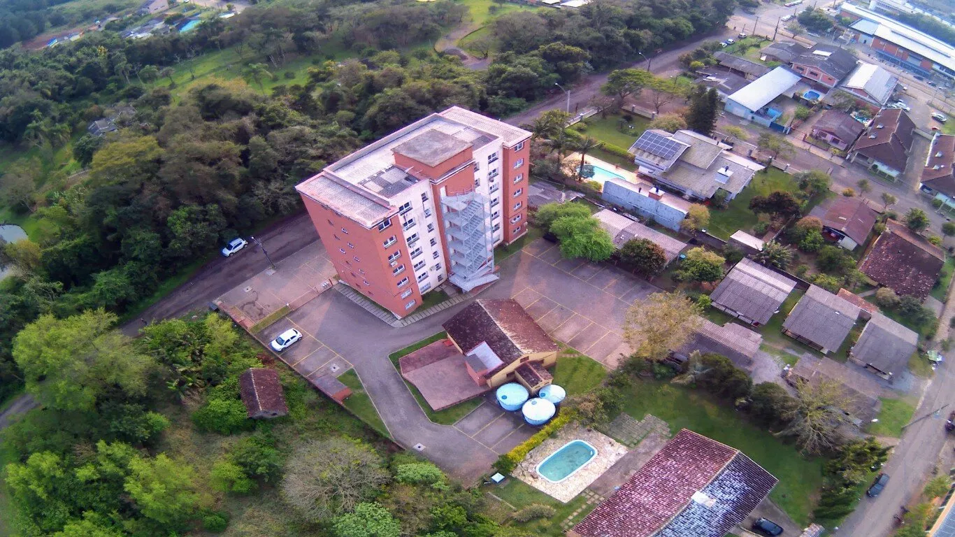 Apartamento composto por um (01) dormitório, sala de estar e jantar integrados, cozinha, um (01) banheiro, área de serviço e um (01) box de estacionamento.