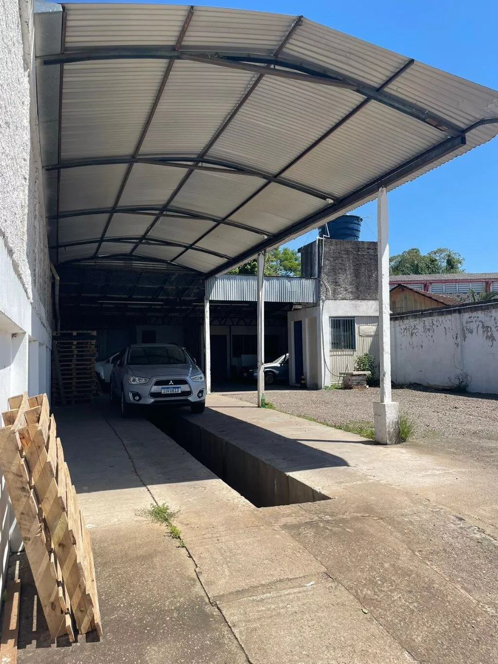 Terreno todo cercado, medindo 324m2, com área construída de 214m2. Possui uma rampa de concreto para lavagem ou manutenção de veículos. Ideal para oficina. Prédio com sala/fogão campeiro, mesa de churrasco, banheiro e mais.