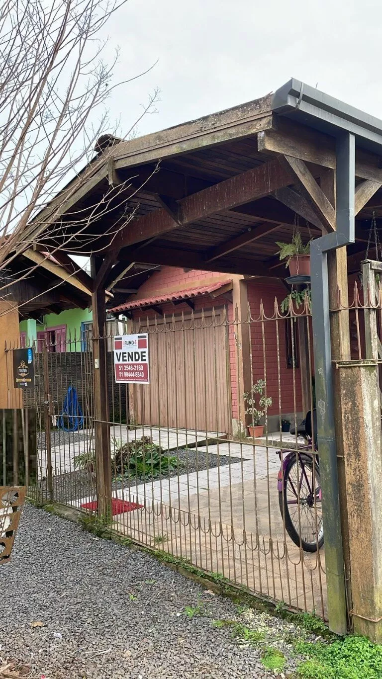 Casa de alvenaria composta por sala de estar, cozinha e sala de jantar integradas, dois (02) dormitórios, um (01) banheiro, garagem com churrasqueira, área na frente, área nos fundos, churrasqueira e canil.