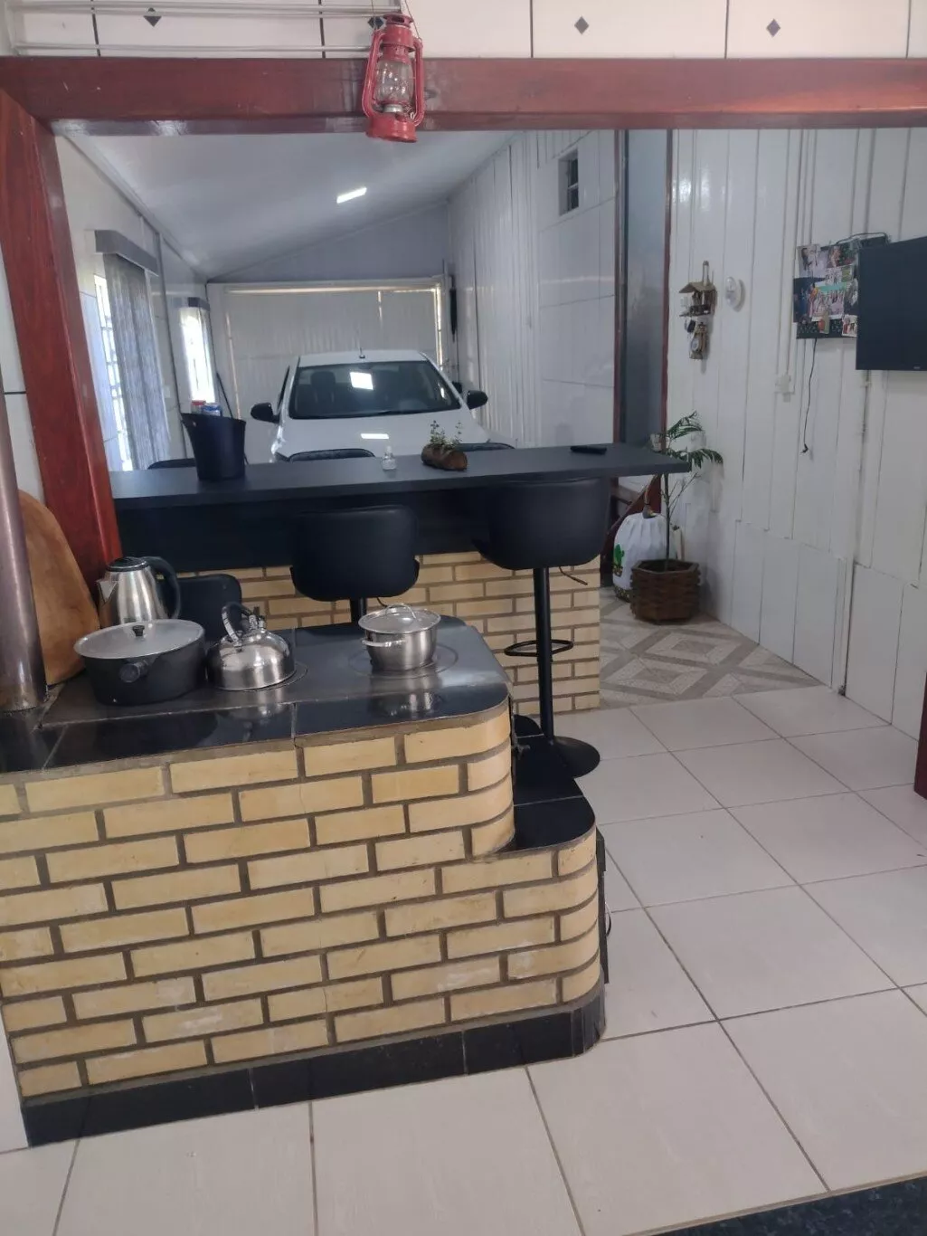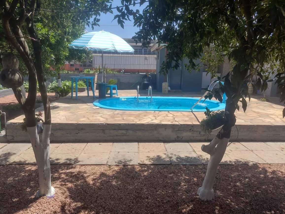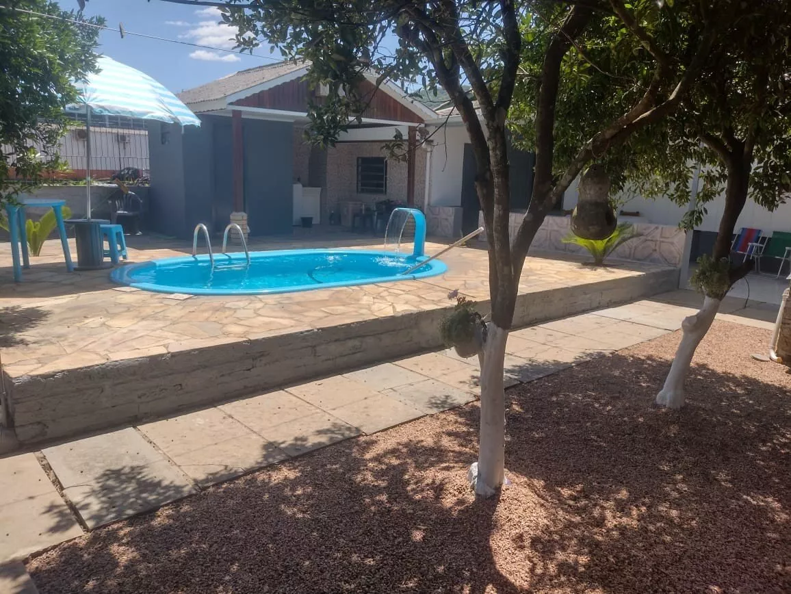 Fundos com piscina, cozinha campeira e mais.