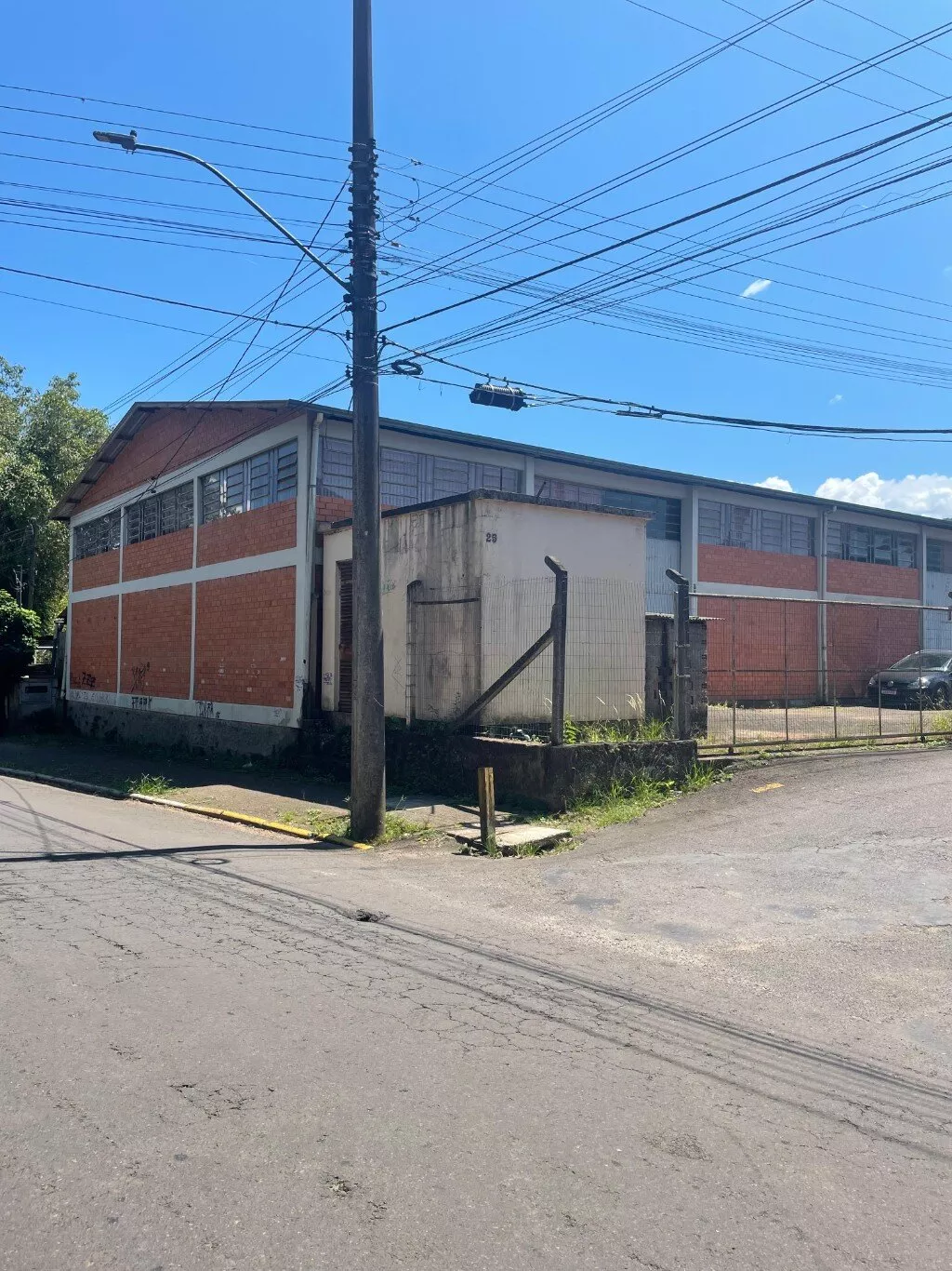 Prédio industrial composto por espaço industrial, mezanino interno, três (03) banheiros. Pé direito alto dois (02) portões de acesso para carga e descarga. Terreno cercado com tela metálica e muros. Possui casa para colocação / instalação de transformador de energia elétrica. |
