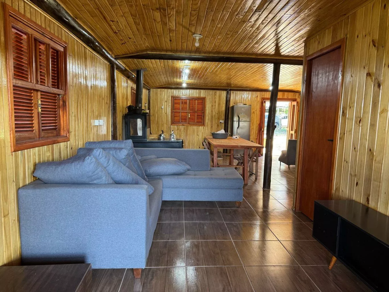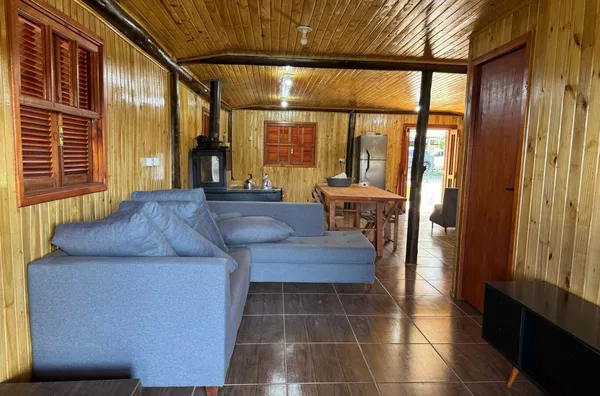 Segunda casa composta por sala de estar, jantar e cozinha integradas, um dormitório, um banheiro e varanda nos fundos com vista panorâmica.