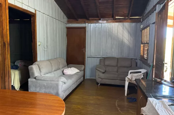 Primeira casa composta por sala de estar, jantar e cozinha integradas, um dormitório, um depóstio e um banheiro.