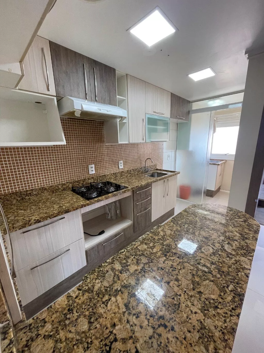 ✔ Cozinha completa com móveis planejados, granitos, fogão, exaustor, churrasqueira rotativa e lixeiras embutidas