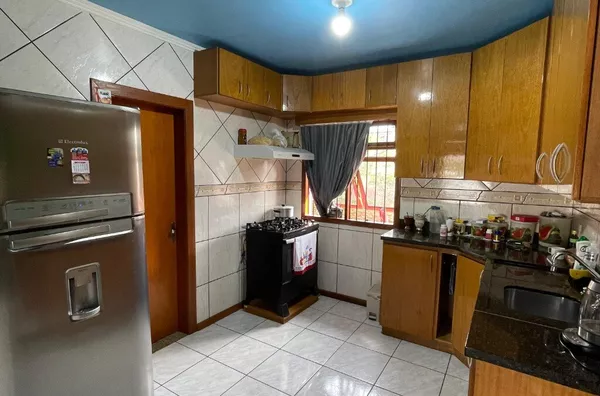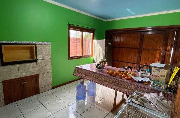Linda casa de alvenaria com 3 dormitórios, 2 banheiros, sala e cozinha integrados, criando um ambiente aconchegante e funcional. Conta com garagem fechada com churrasqueira, ideal para receber amigos e família.
