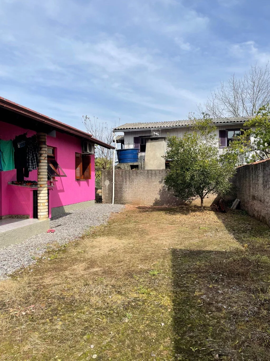 O pátio é todo cercado com muro e grades, proporcionando mais privacidade e segurança.