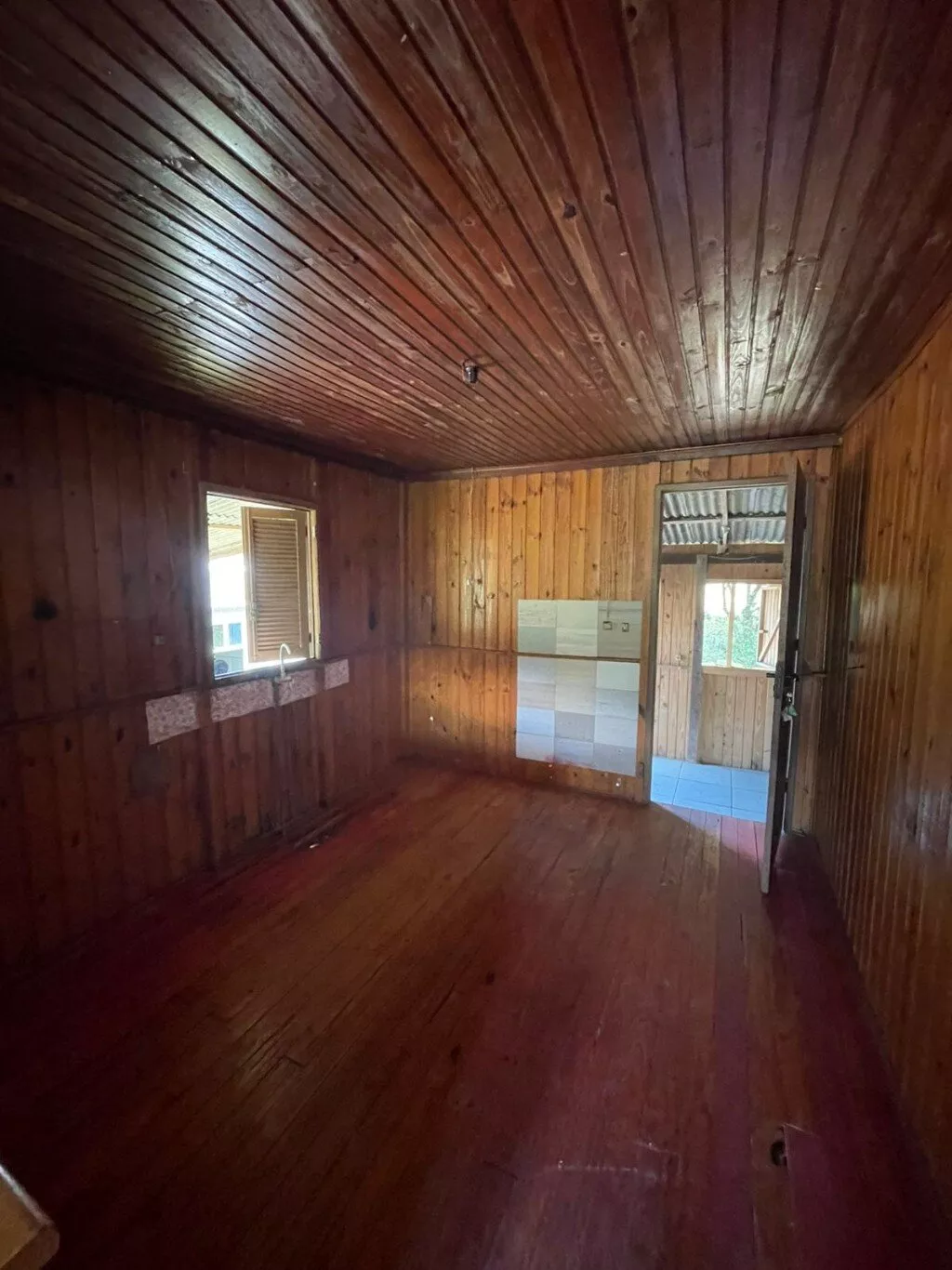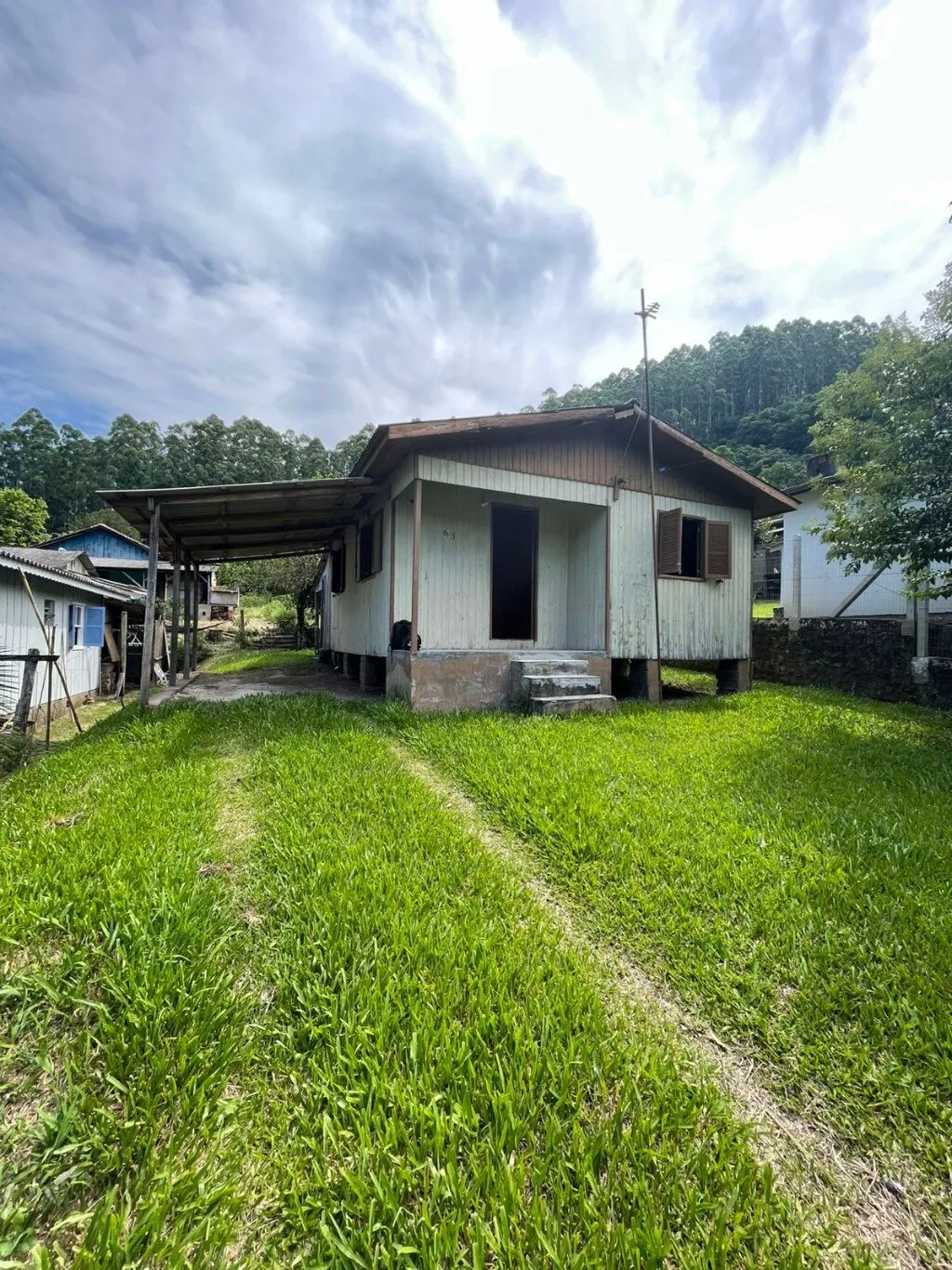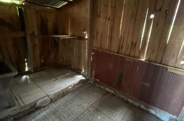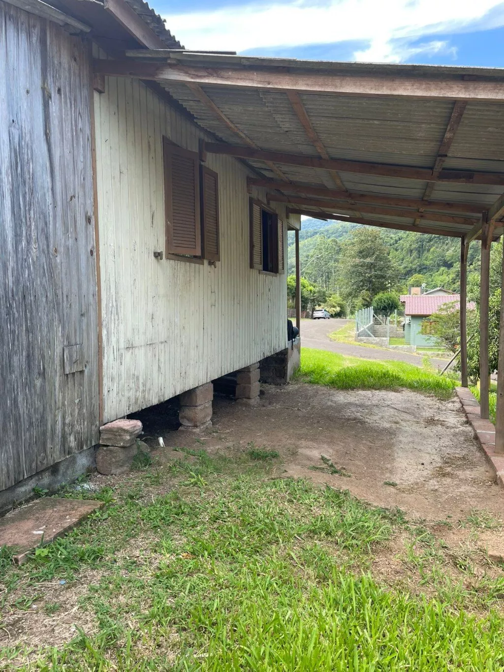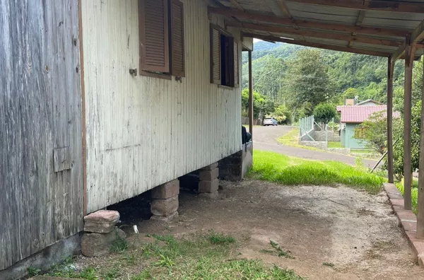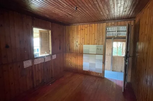 Casa disponível para venda, composta por sala e cozinha, 1 banheiro, 2 dormitórios, lavanderia e abrigo lateral coberto. Medindo aproximadamente 45m² de área construída.