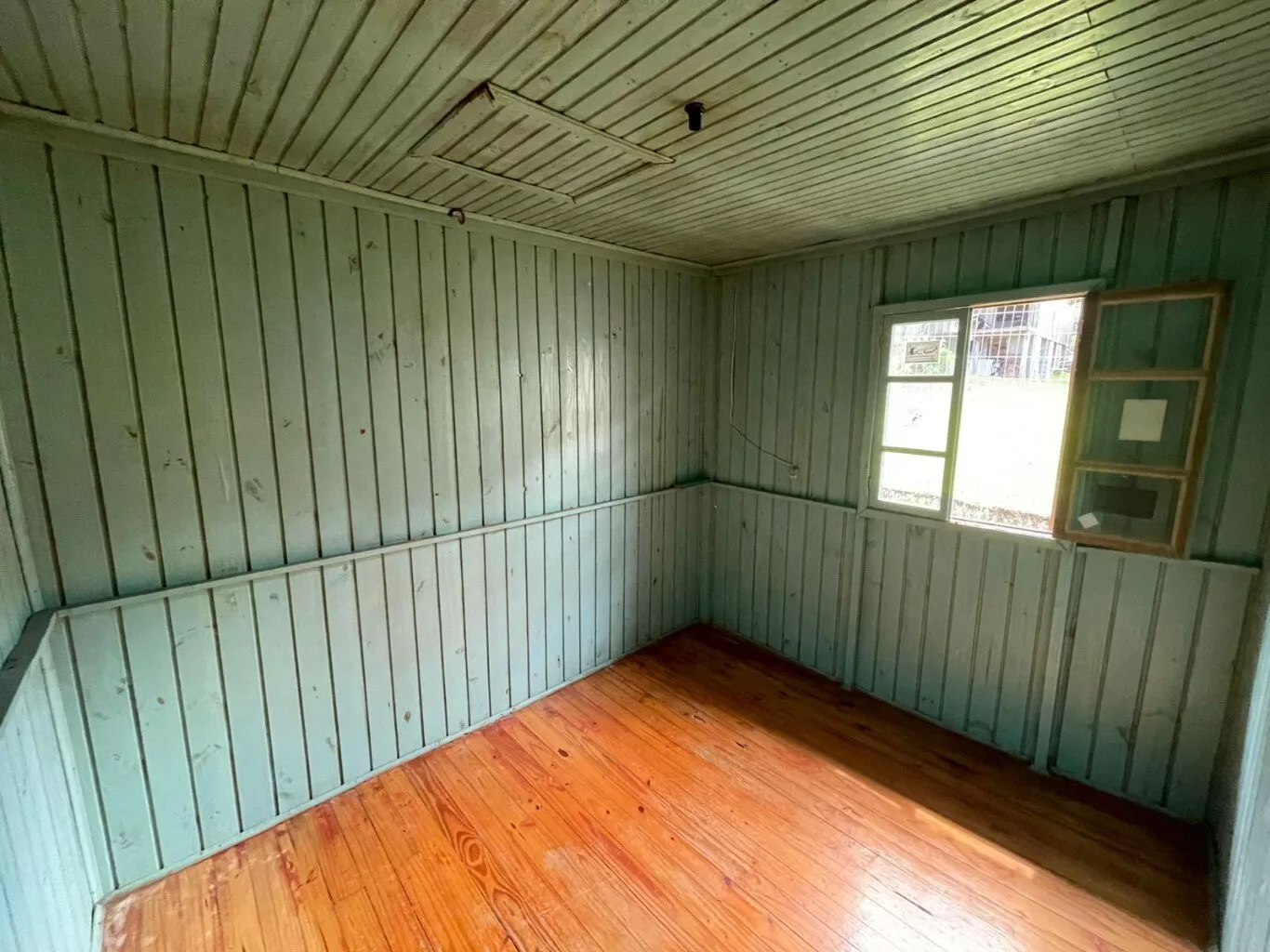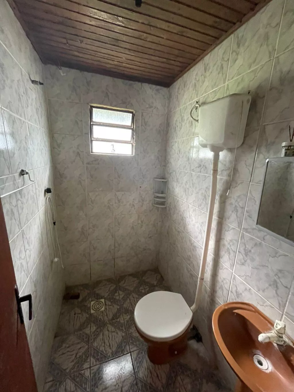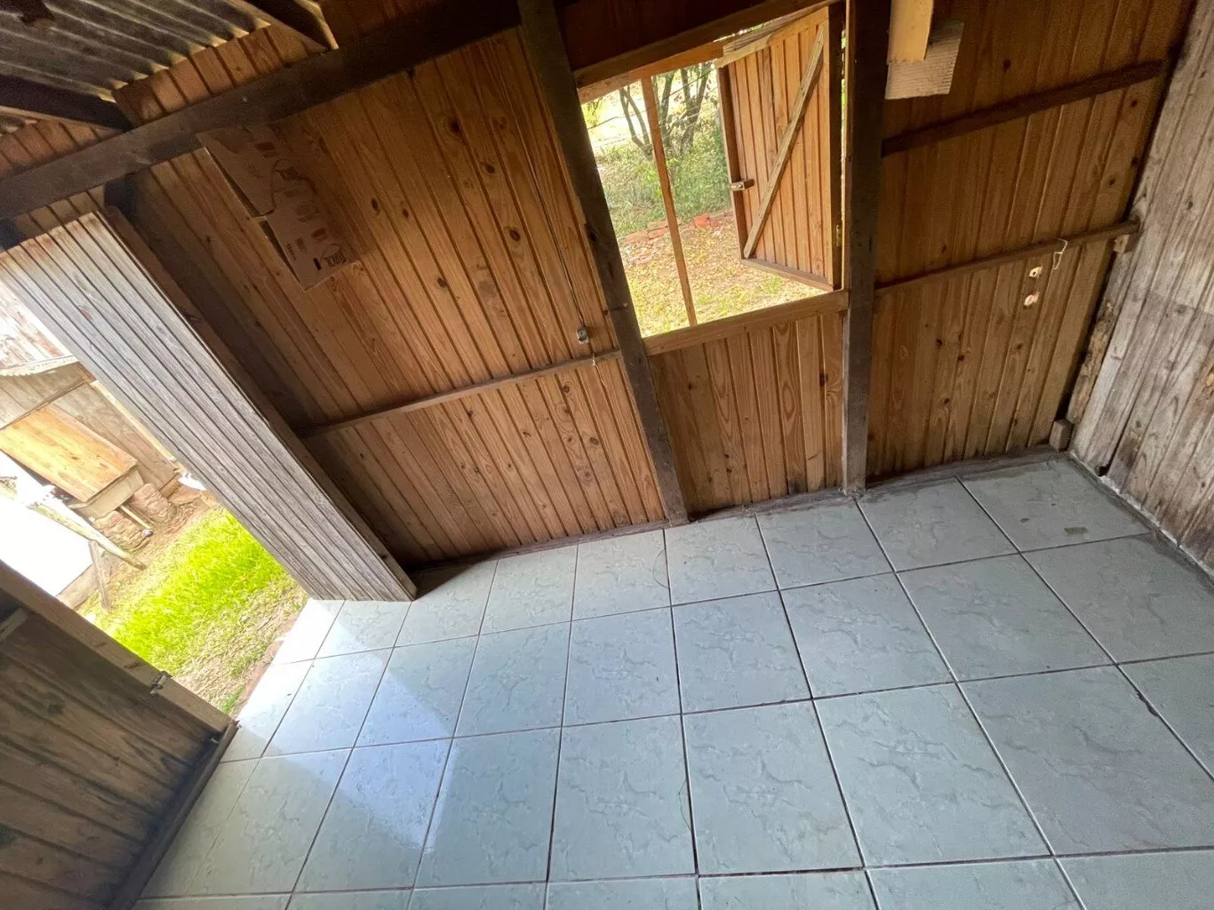 Casa disponível para venda, composta por sala e cozinha, 1 banheiro, 2 dormitórios, lavanderia e abrigo lateral coberto. Medindo aproximadamente 45m² de área construída.